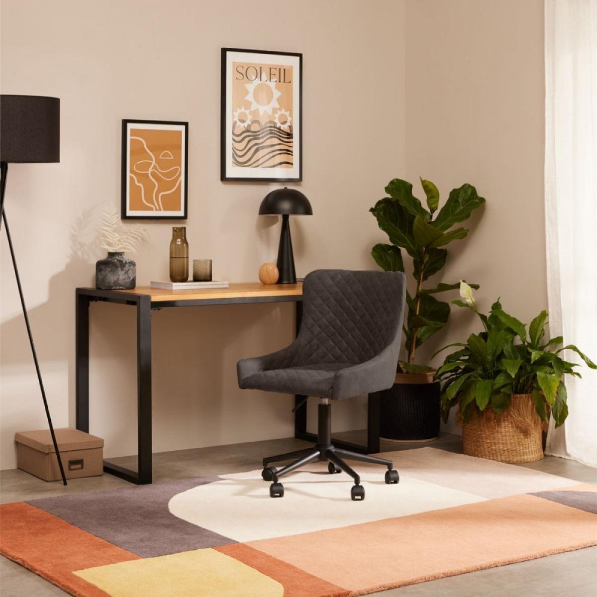 I love this chair for its versatile vintage vibe and practicality, making it a great fit for both home offices and more contemporary workspaces. Its soft dark grey upholstery adds a touch of understated sophistication, while the quilted back detail brings subtle texture, perfect for layering in eclectic or mid-century-inspired interiors. To style it well, consider pairing it with a sleek desk and minimalist accessories to allow its character to shine, or soften its look by adding cosy throws or cushions. It works particularly well in spaces where comfort and style need to coexist, bringing a refined yet approachable feel to your work zone.