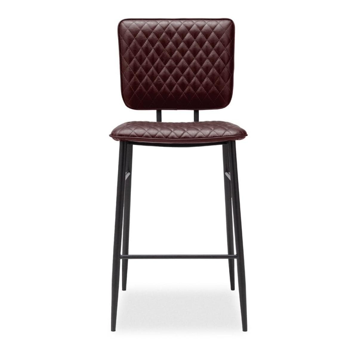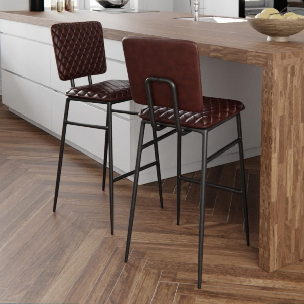 This is the Elgin - a bold, sophisticated metal kitchen stool that will add an industrial charm to your kitchen. Showcasing a quilted dark red faux leather upholstery and a sleek metal frame that emanates a retro vibe. Complete the look with a reclaimed wood dining table. View The Elgin Range
