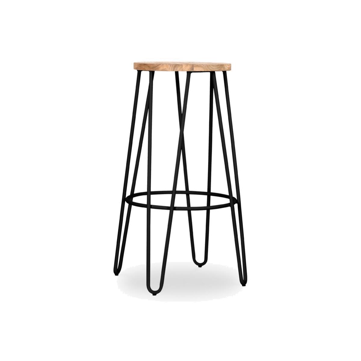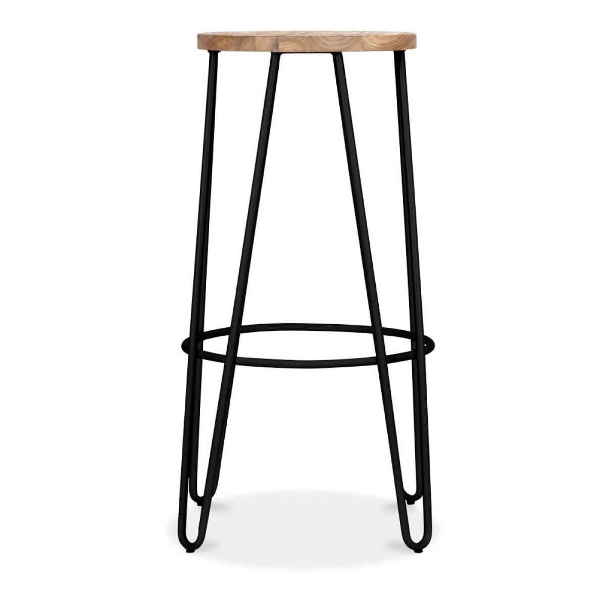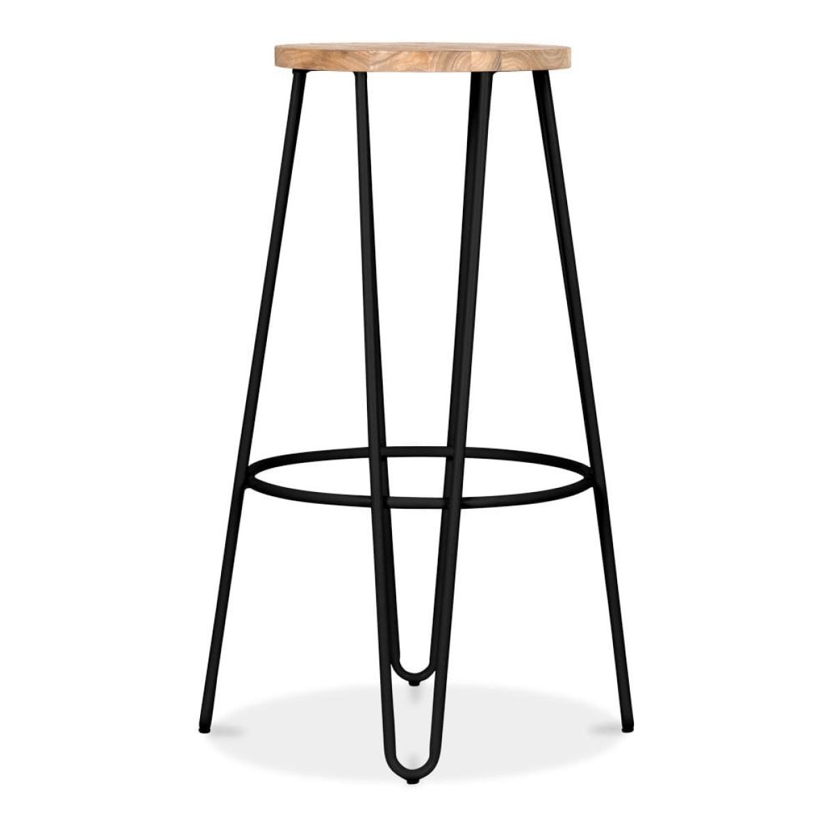 £20 Off Hairpin Metal Bar Stool, Elm Wood & Black Natural Wood Seat