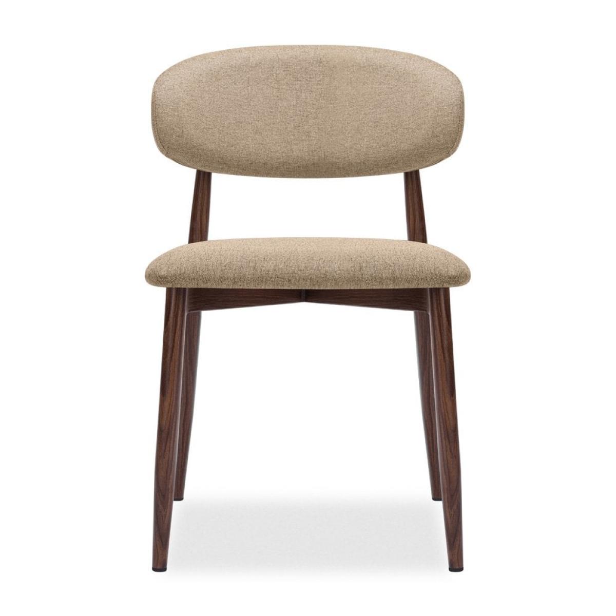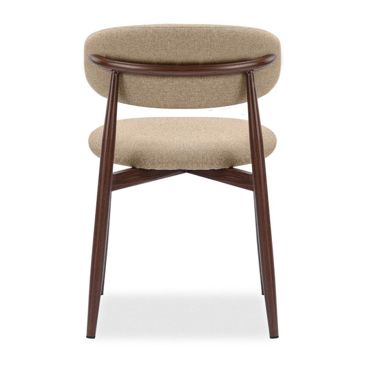 The harmonious blend of Nordic and Mid-Century in the Halston Dining Chair makes it an irresistible option for kitchen and dining spaces. The curved metal frame has a walnut wood finish and is cross-fixed, making the Halston durable and long-lasting for a high quality finish built to last. Crafted for comfort, the seat is upholstered in sustainably-sourced fabric, soft and textural to the touch, in a light brown and cream hue. For a rich depth of colour and unique softness, our fabric used in this chair is not only of the highest quality but it is made from 100% recycled PET yarns so it is kinder to the environment too. View The Halston Range