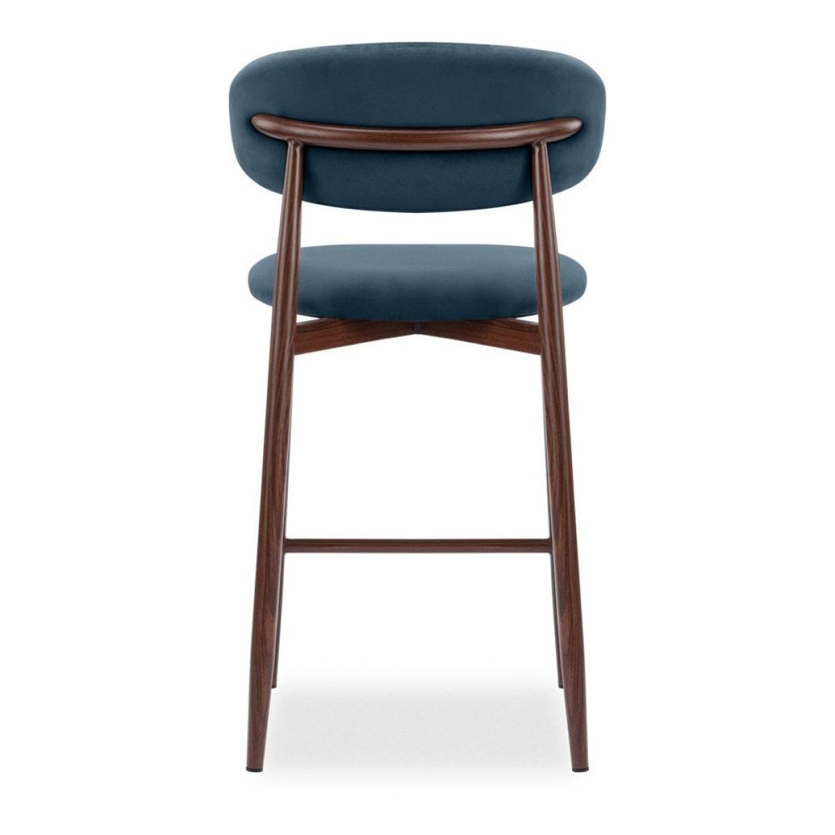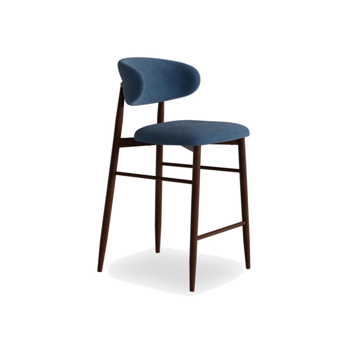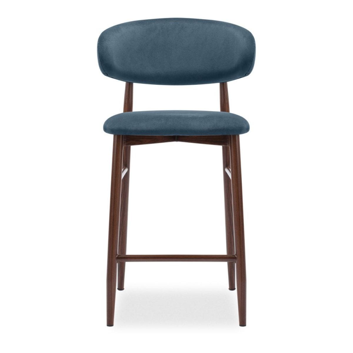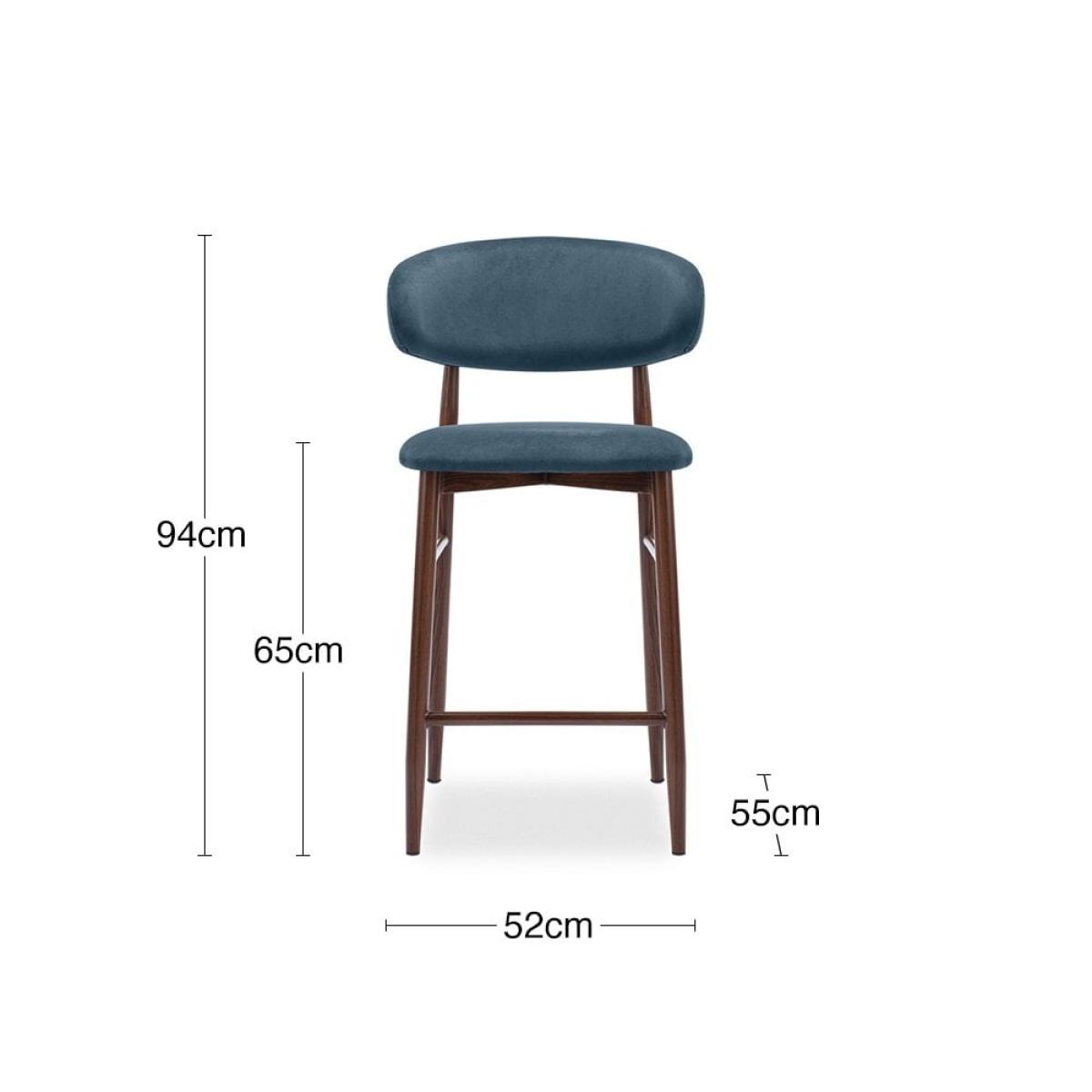 The harmonious blend of Nordic and Mid-Century in the Halston Kitchen Stool makes it an irresistible option for kitchen counters. The curved metal frame has a walnut wood finish and is cross-fixed, making the Halston durable and long-lasting for a high quality finish built to last. Crafted for comfort, the seat is upholstered in sustainably-sourced velvet, soft and textural to the touch, in a dusty blue hue. For a rich depth of colour and unique softness, our velvet used in this chair is not only of the highest quality but it is made from 100% recycled PET yarns so it is kinder to the environment too. View The Halston Range