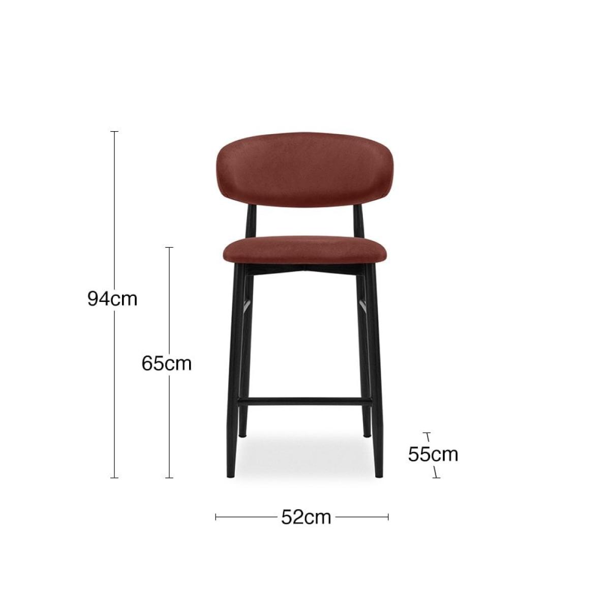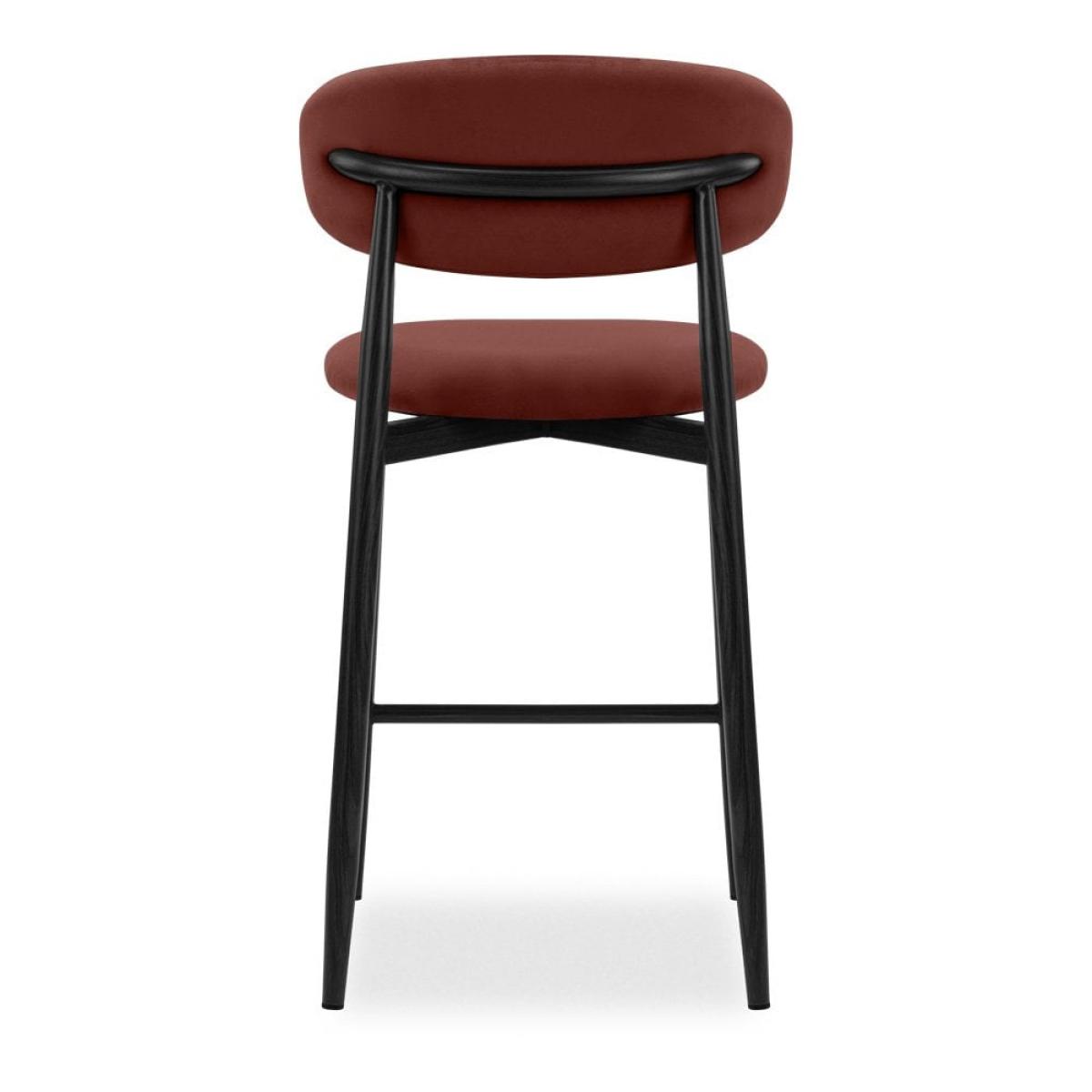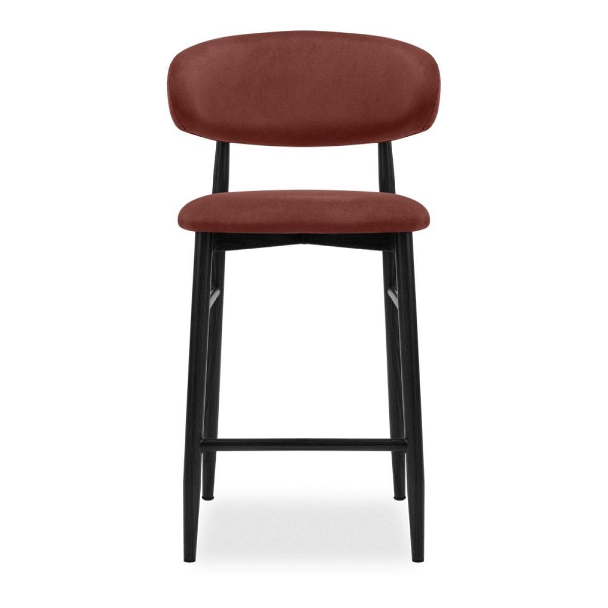 The harmonious blend of Nordic and Mid-Century in the Halston Kitchen Stool makes it an irresistible option for kitchen counters. The curved metal frame has a black finish and is cross-fixed, making the Halston durable and long-lasting for a high quality finish built to last. Crafted for comfort, the seat is upholstered in velvet, soft and textural to the touch, in a rust red hue. View The Halston Range For a rich depth of colour and unique softness, our velvet used in this chair is not only of the highest quality but it is made from recycled PET yarns so it is kinder to the environment too.