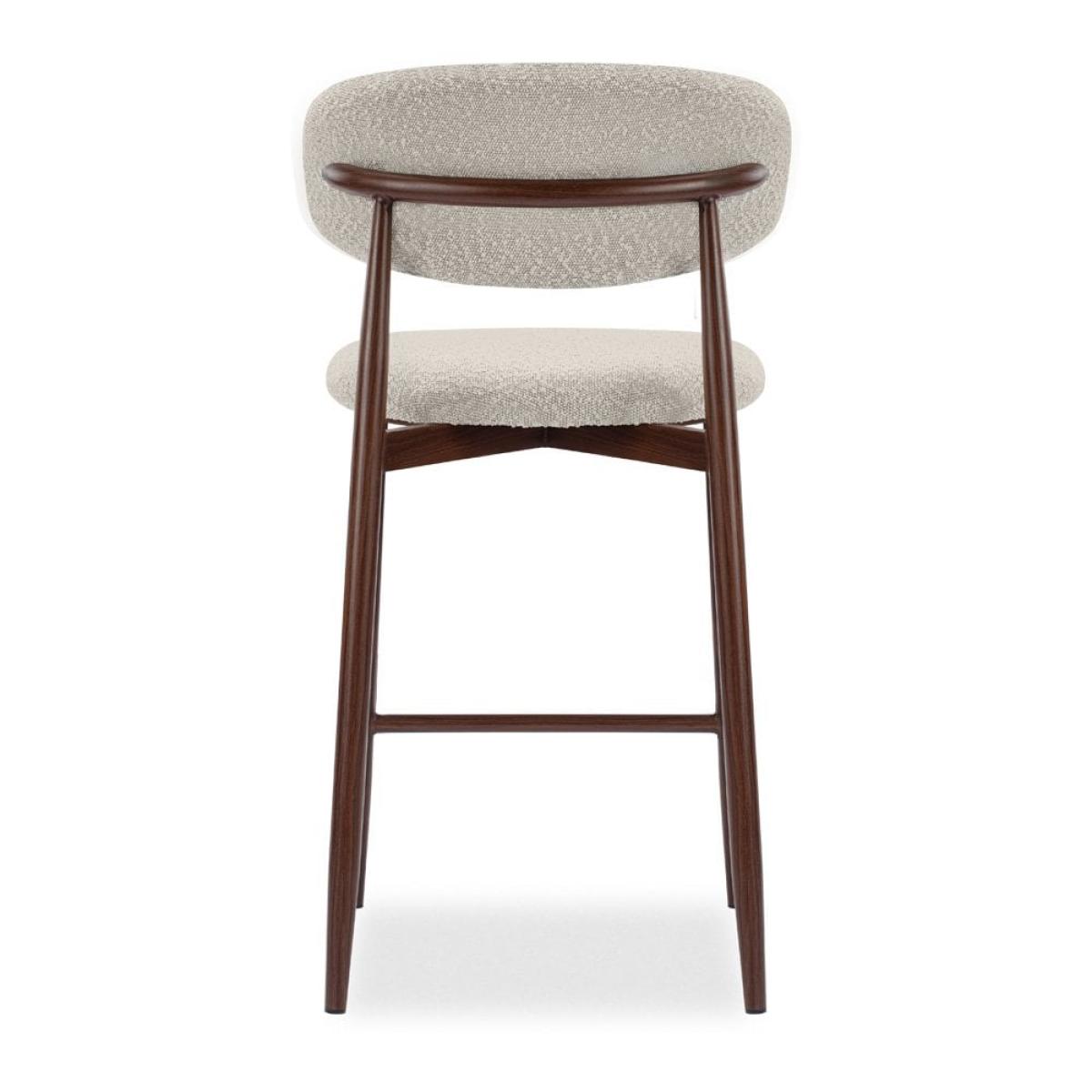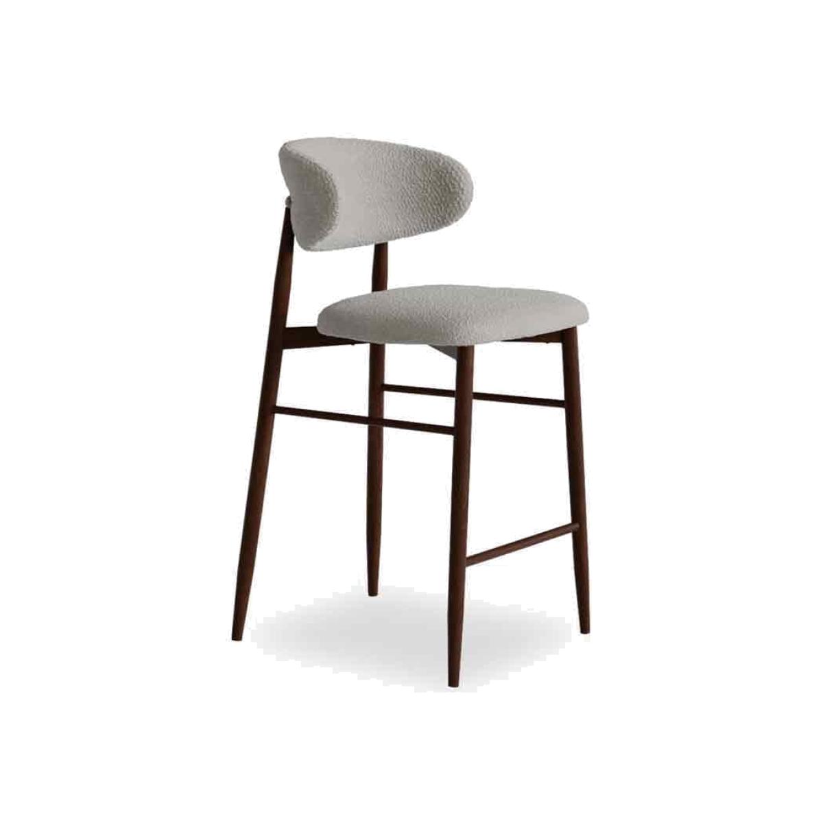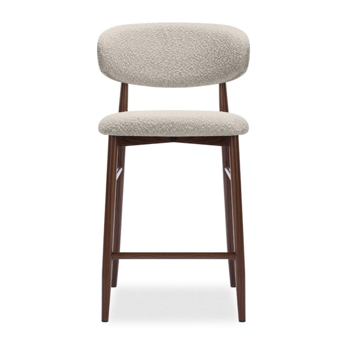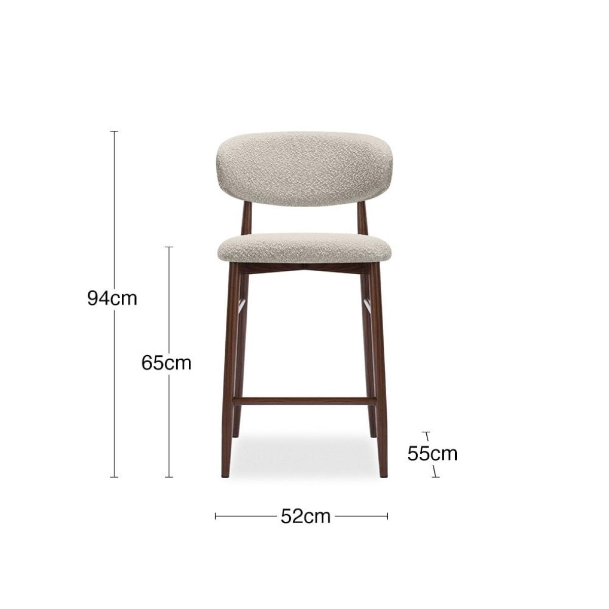 The harmonious blend of Nordic and Mid-Century in the Halston Kitchen Stool makes it an irresistible option for kitchen counters. The curved metal frame has a walnut wood finish and is cross-fixed, making the Halston durable and long-lasting for a high quality finish built to last. Crafted for comfort, the seat is upholstered in sustainably-sourced boucle, soft and textural to the touch, in a mottled cream and grey hue. For a rich depth of colour and unique softness, our boucle used in this chair is not only of the highest quality but it is made from recycled PET yarns so it is kinder to the environment too. View The Halston Range