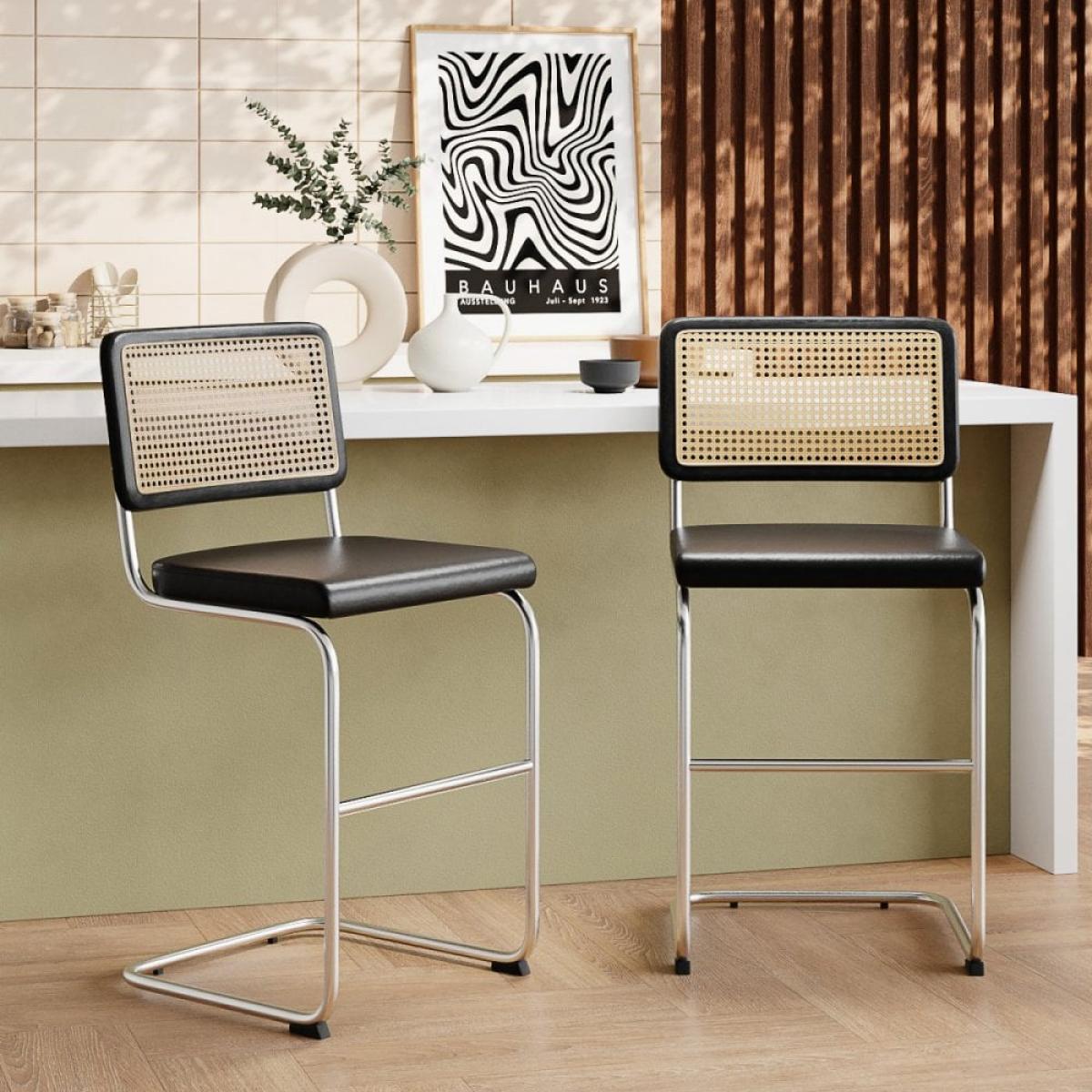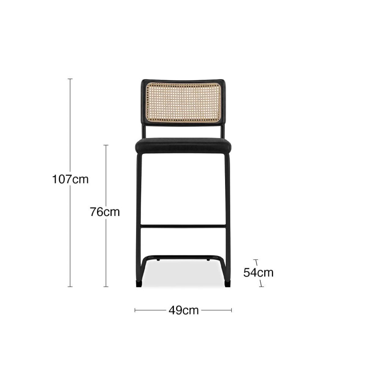 Inspired by Marcel Breuer's Cesca Chair, the Kenton Range is instantly recognisable for its Bauhaus roots. With an S-shaped framework and blend of modernist materials including smooth vintage black faux leather seat and chrome metal frame with a black-stained wood and cane backrest. This Kenton Cantilever Bar Stool is a staple in homes for its beautifully simple design. Considered one of the most influential designs of the 20th century, this bar stool has a timeless appeal you've just got to have in your kitchen. View The Kenton Range