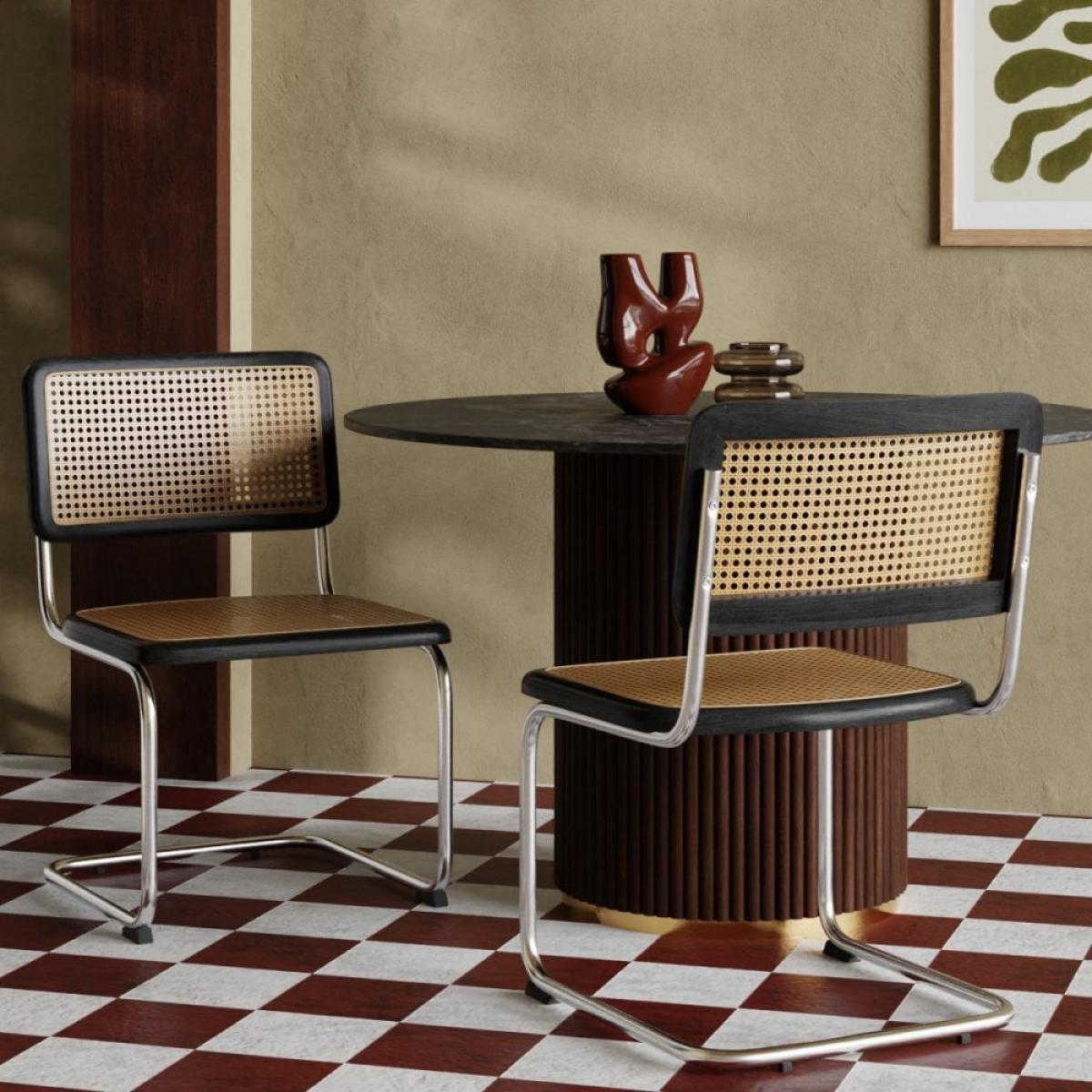 Inspired by Marcel Breuer's Cesca Chair, the Kenton Range is instantly recognisable for its Bauhaus roots including an S-shaped framework and blend of modernist materials. A staple in homes for its beautifully simple design, this Kenton Cantilever Dining Chair features chrome metal frame with a black-stained wood and cane seat and backrest. Considered one of the most influential designs of the 20th century, this dining chair has a timeless appeal you've just got to have around your dining table. View The Kenton Range