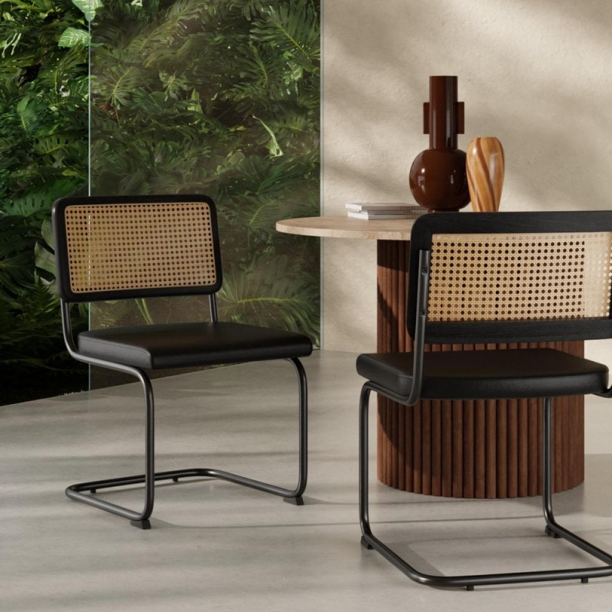 I’m a fan of the Kenton chair for its mix of sleek black steel and natural cane - it brings a touch of warmth to an otherwise minimal frame, and the cantilever base adds a subtle spring when you sit. It sits equally well in a Scandi-inspired kitchen, an industrial loft or a simple monochrome dining room. For styling, team it with a solid oak or marble-top table to balance the metal, and layer a textured seat pad or slim lumbar cushion in muted tones for extra comfort. You can mix a couple of Kentons with different chairs on the long sides of your table to keep the look relaxed and collected.