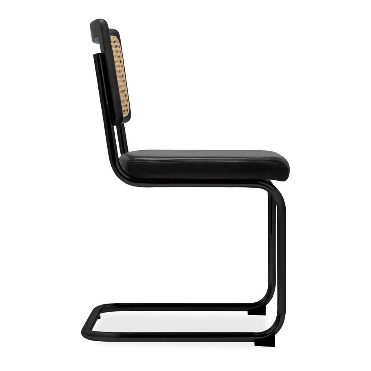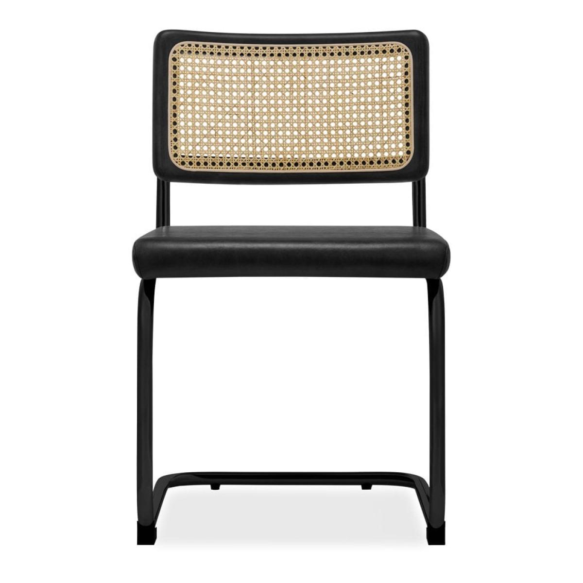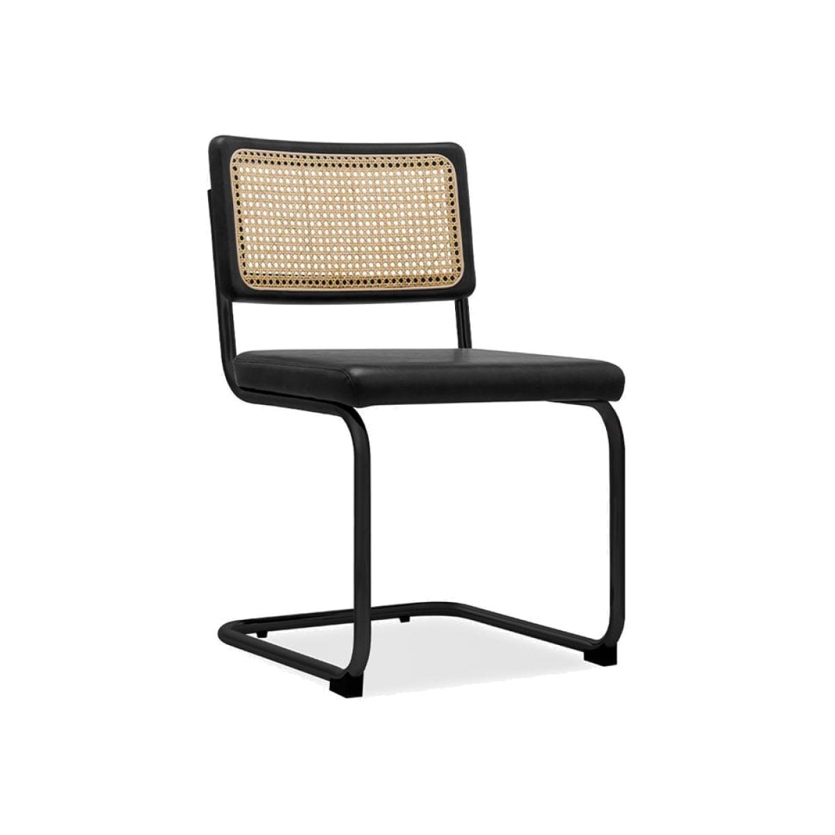 Inspired by Marcel Breuer's Cesca Chair, the Kenton Range is instantly recognisable for its Bauhaus roots including an S-shaped framework and blend of modernist materials. A staple in homes for its beautifully simple design, this Kenton Cantilever Dining Chair features smooth vintage black faux leather seat and black metal frame with a black-stained wood and cane backrest. Considered one of the most influential designs of the 20th century, this dining chair has a timeless appeal you've just got to have around your dining table. View The Kenton Range