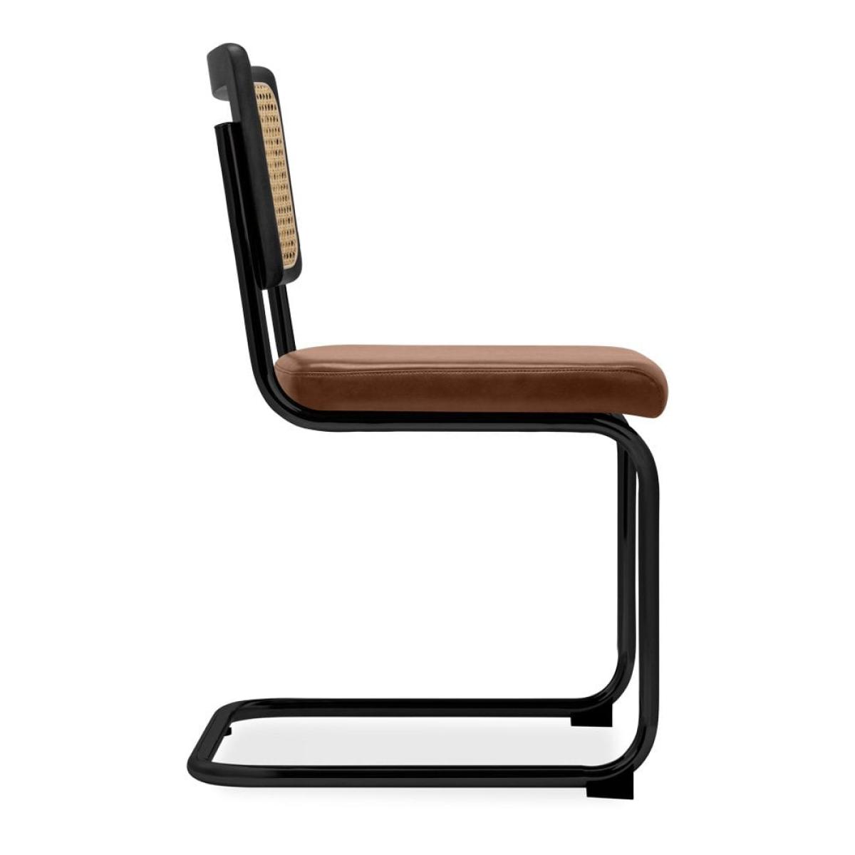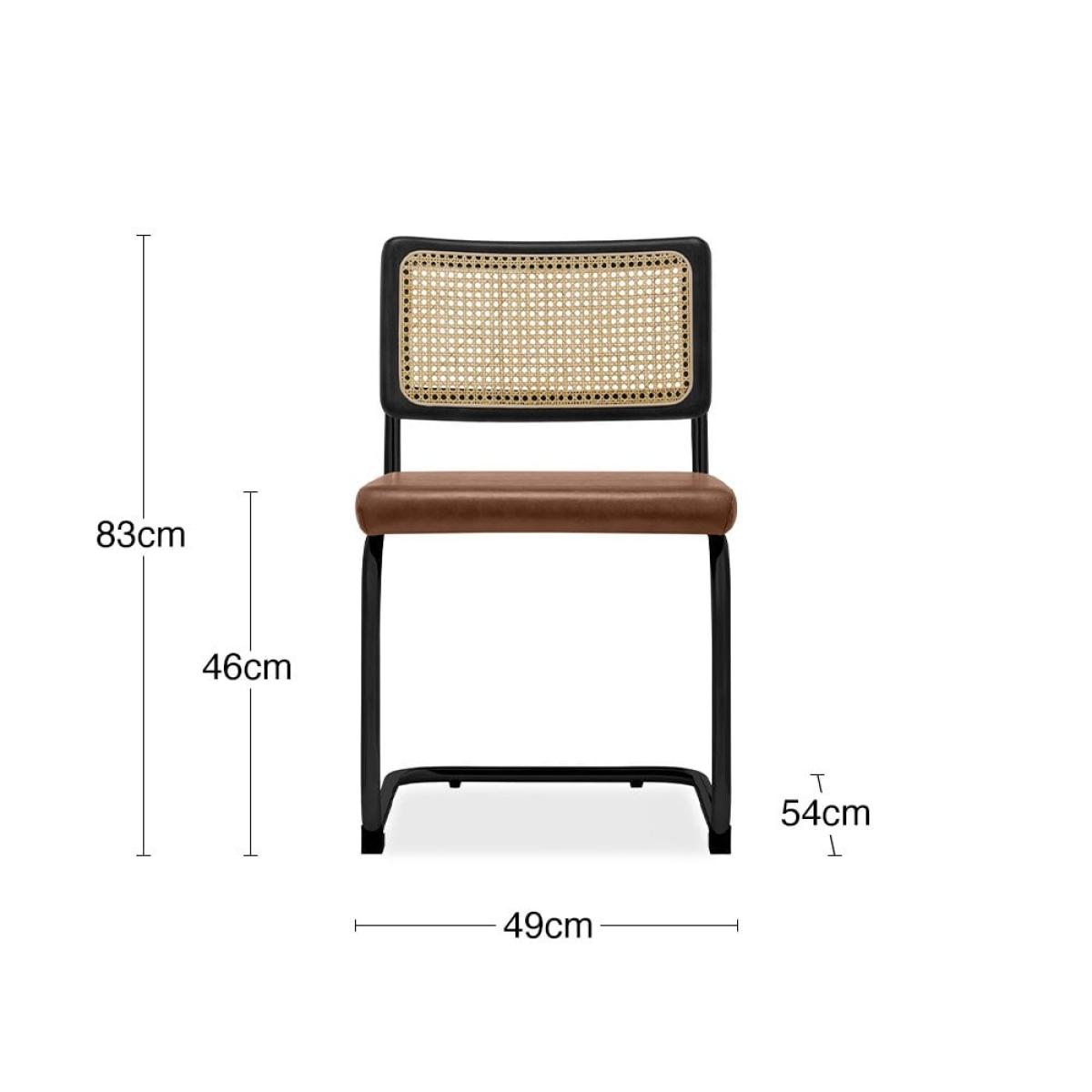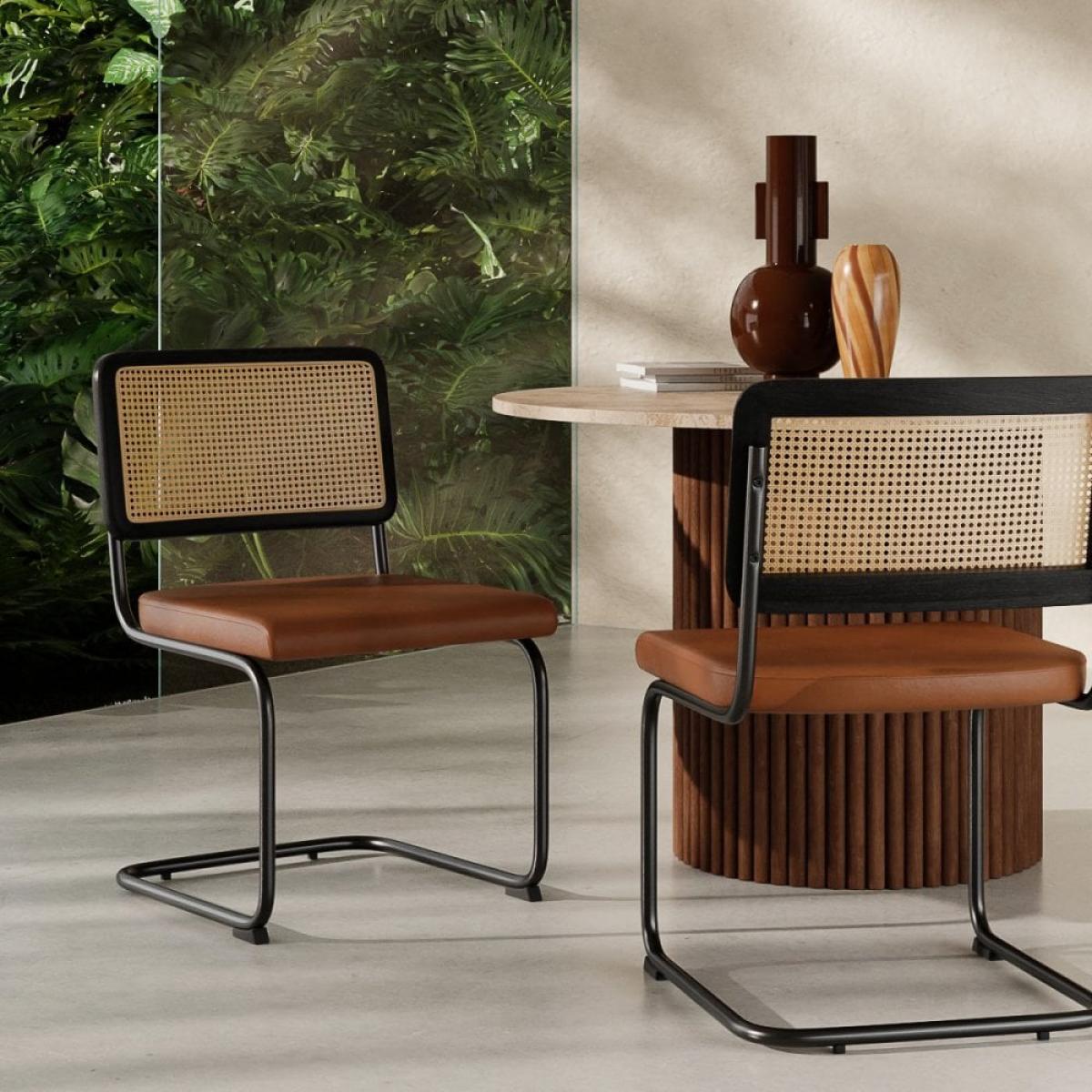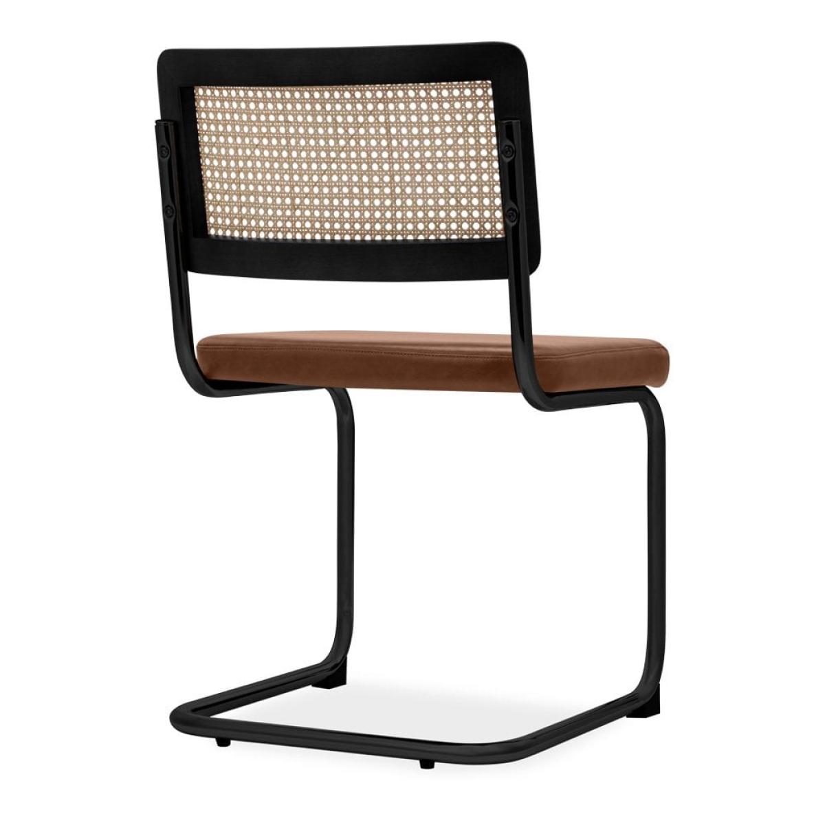 Inspired by Marcel Breuer's Cesca Chair, the Kenton Range is instantly recognisable for its Bauhaus roots including an S-shaped framework and blend of modernist materials. A staple in homes for its beautifully simple design, this Kenton Cantilever Dining Chair features smooth vintage tan faux leather seat and black metal frame with a black-stained wood and cane backrest. Considered one of the most influential designs of the 20th century, this dining chair has a timeless appeal you've just got to have around your dining table. View The Kenton Range