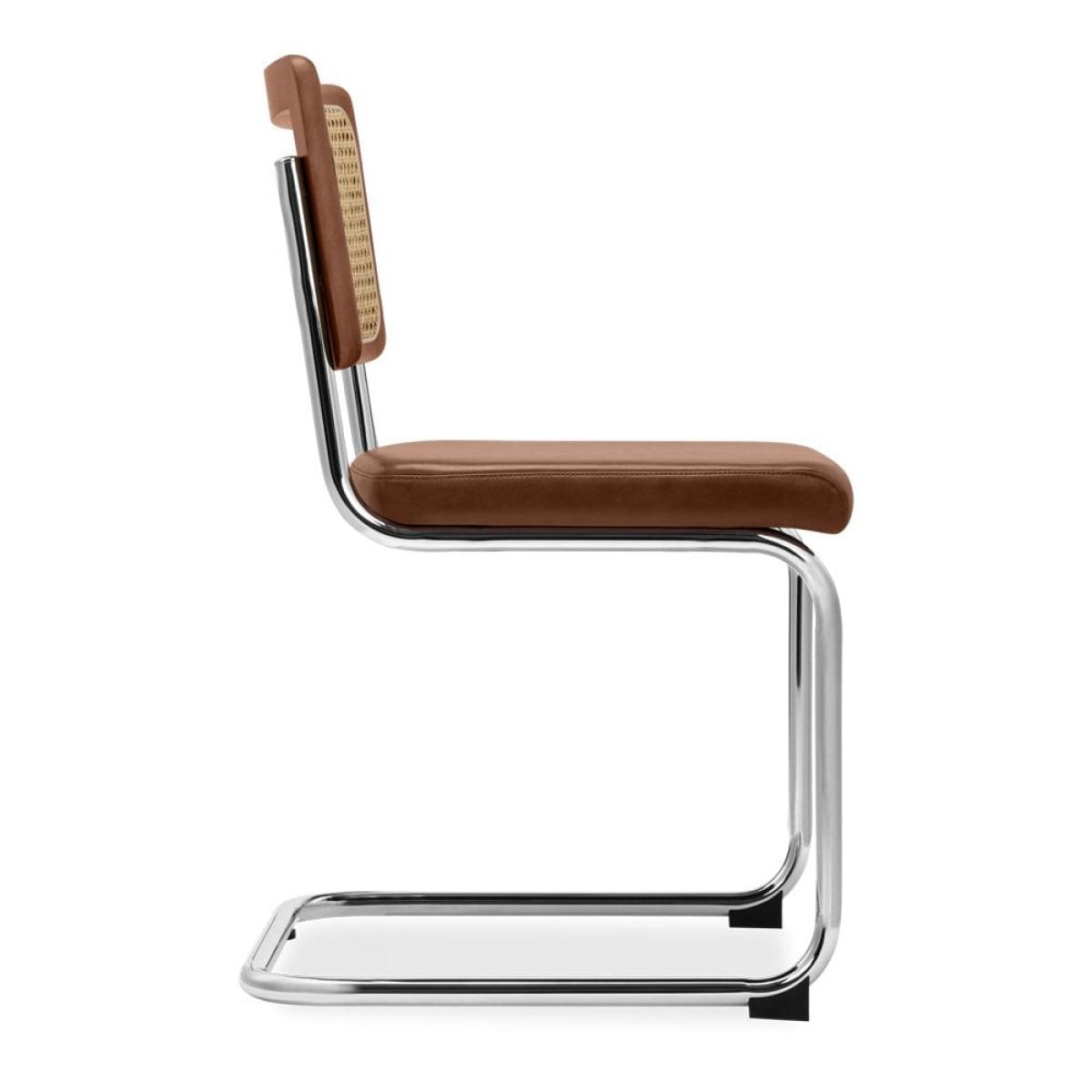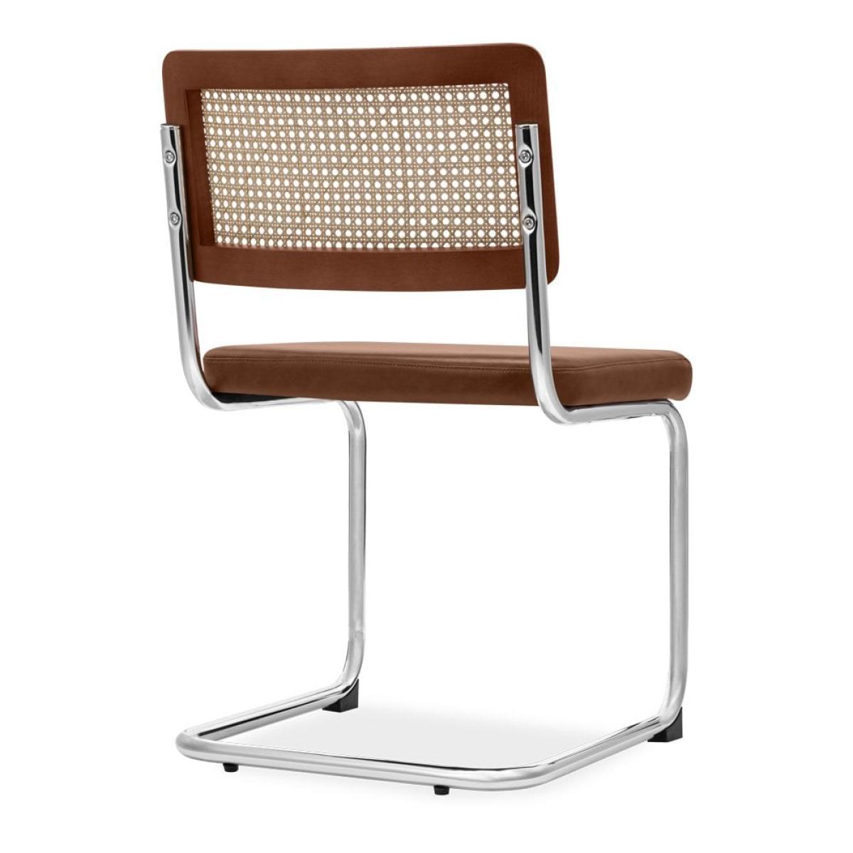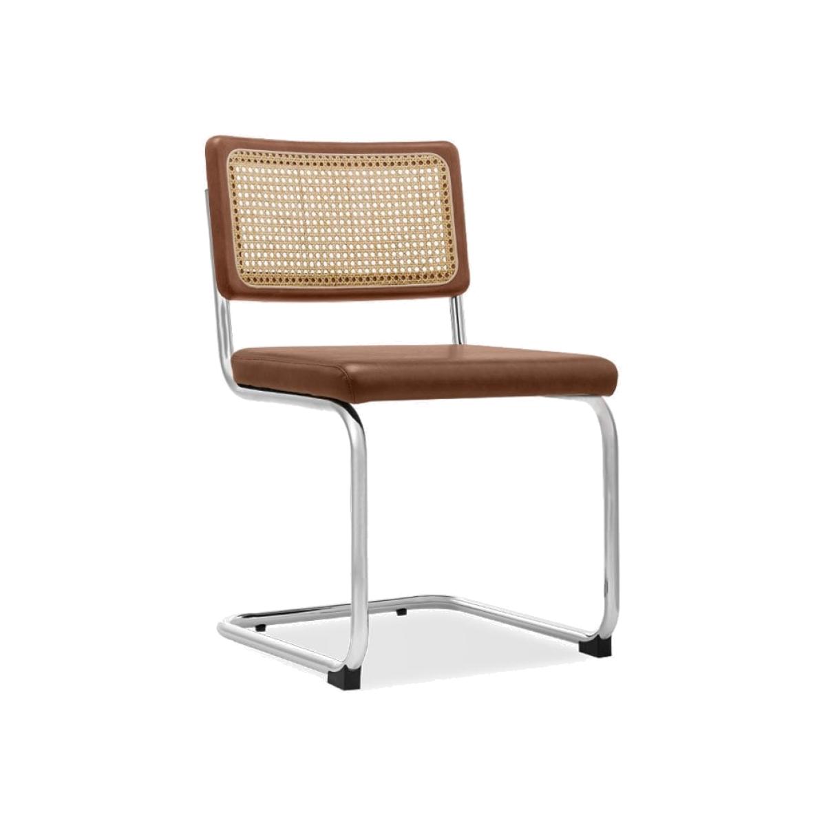 Inspired by Marcel Breuer's Cesca Chair, the Kenton Range is instantly recognisable for its Bauhaus roots including an S-shaped framework and blend of modernist materials. A staple in homes for its beautifully simple design, this Kenton Cantilever Dining Chair features smooth vintage tan faux leather seat and chrome metal frame with a walnut-stained wood and cane backrest. Considered one of the most influential designs of the 20th century, this dining chair has a timeless appeal you've just got to have around your dining table. View The Kenton Range