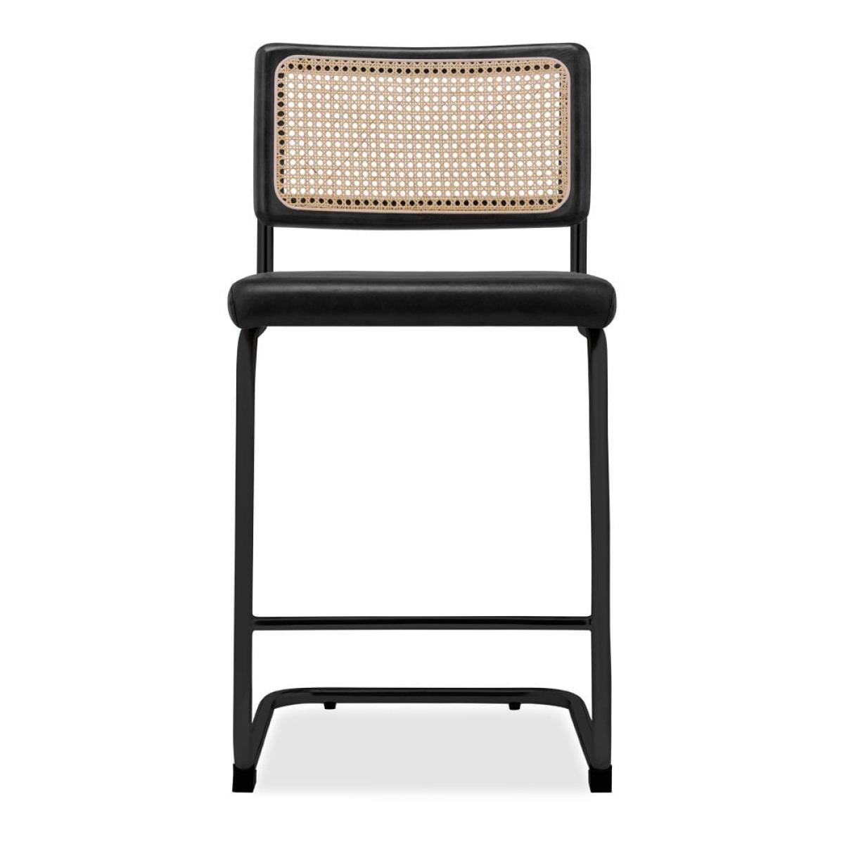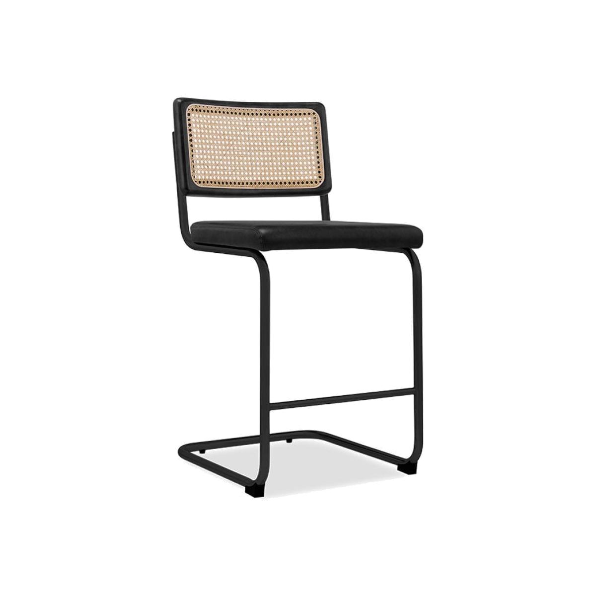 Inspired by Marcel Breuer's Cesca Chair, the Kenton Range is instantly recognisable for its Bauhaus roots including an S-shaped framework and blend of modernist materials. A staple in homes for its beautifully simple design, this Kenton Cantilever Kitchen Stool features smooth vintage black faux leather seat and black metal frame with a black-stained wood and cane backrest. Considered one of the most influential designs of the 20th century, this kitchen stool has a timeless appeal you've just got to have in your kitchen. View The Kenton Range