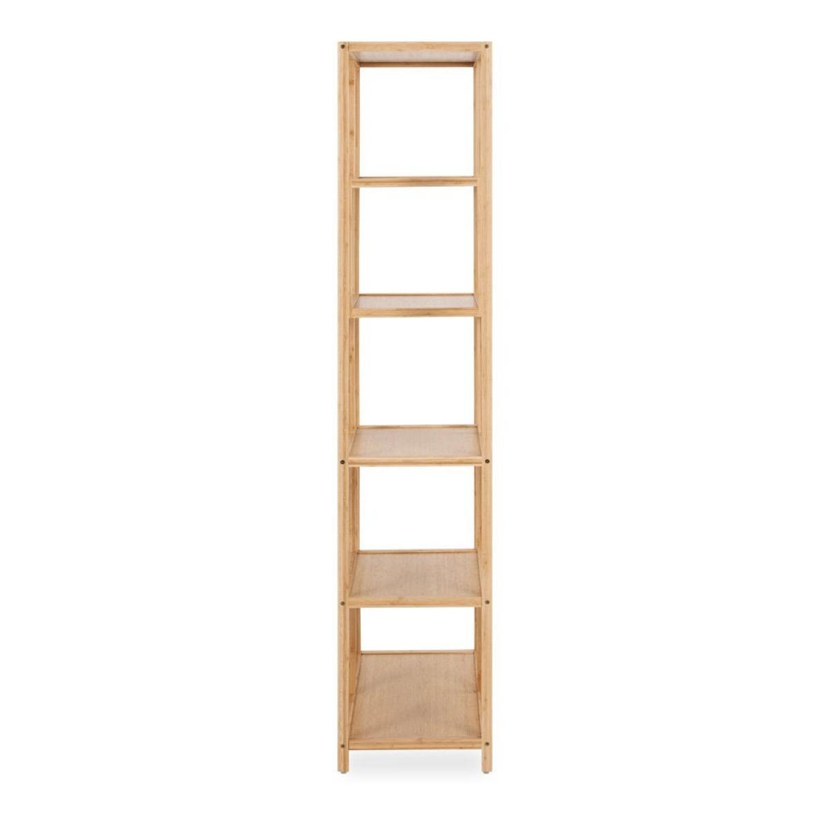 Made entirely of bamboo, the Moso Tall Bookcase is a sustainable choice for your home, whilst adding style and durabie design. This bookcase includes five shelves in an asymmetric style to add a modern touch and ample space. The Moso Wooden Bookcase is airy and simple; ideal for relaxed hygge homes. Being a natural material. the colour and grains of the Moso Bookcase may vary from what is pictured.