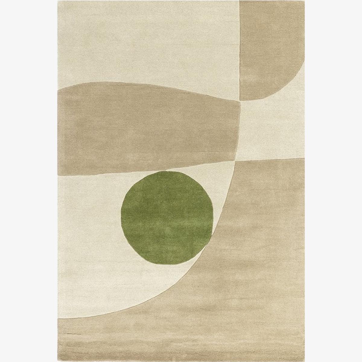I love this mossburn hand tufted rug for its versatile taupe base accented by the vibrant green circle, which adds a fresh, contemporary touch. It works well in modern living rooms or bedrooms, especially by pairing it with minimalist furniture to let the rug be a real focal point. Practical styling tips include layering it over neutral carpeting or hardwood floors for warmth, and complementing its colours with cushions or accessories in similar earthy tones. Given its sizeable 200 x 290cm dimensions, it’s perfect for anchoring larger spaces or creating a defined zone within an open-plan layout. The soft, textured finish also adds a cosy feel, making it a functional yet stylish addition to a variety of interiors.