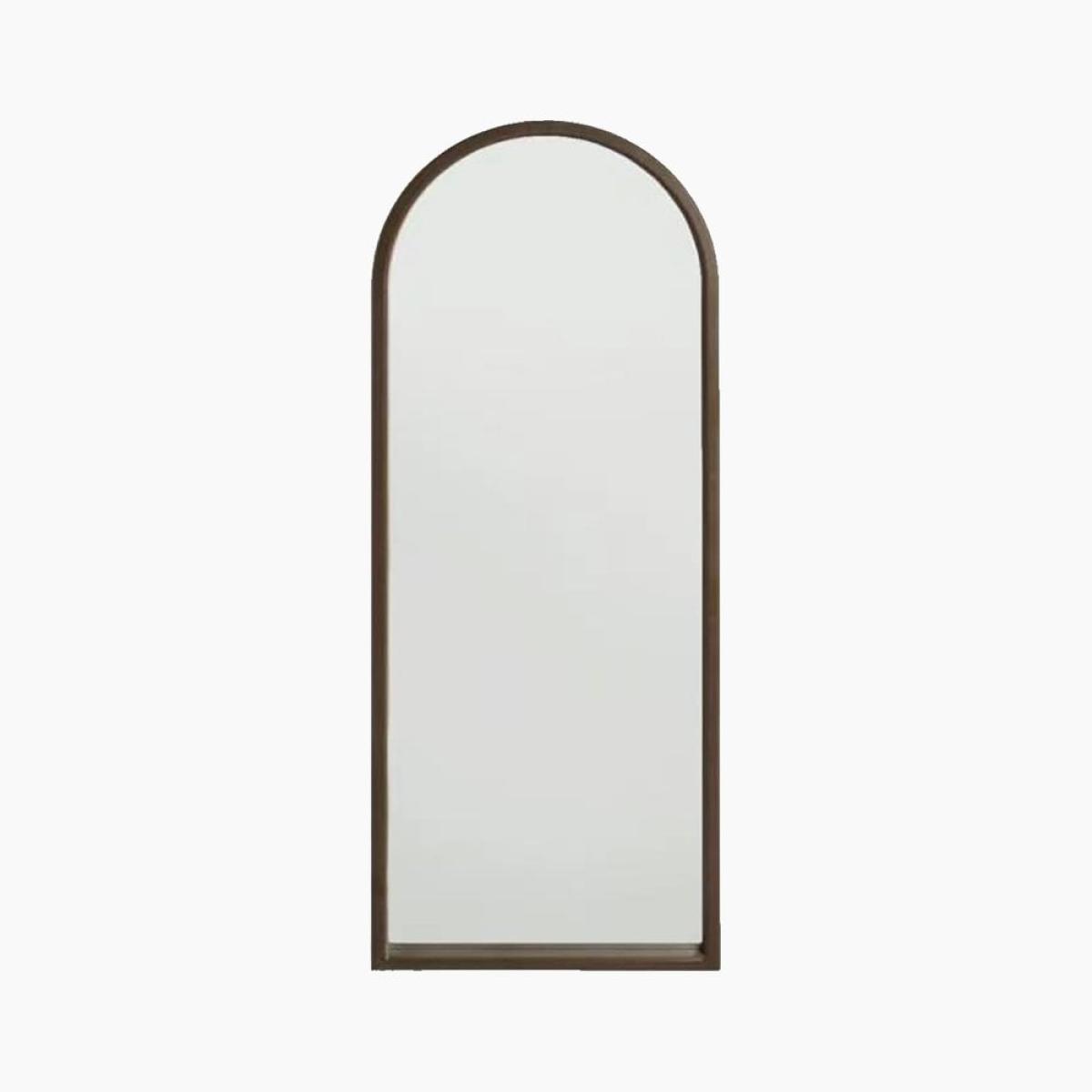 I love this full-length mirror because of its elegant walnut frame, which adds warmth and a touch of sophistication to any space. It works particularly well in bedrooms, dressing areas, or hallways where full views are essential. The simple, curved design makes it versatile enough to complement contemporary or classic interiors. For styling tips, try leaning it against the wall for a relaxed look or hanging it for a more polished feel. Pairing it with natural wood furniture or textured textiles can help create a cohesive, inviting space. Plus, its height makes it functional for outfit checks and adds the illusion of extra space in smaller rooms.