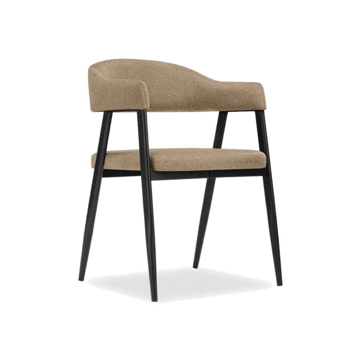 An industrial dining chair made from sustainable fabric and metal, the Presley displays strong structural design and comfort, all in one. Upholstered in neutral latte with a padded backrest and seat, and durable black metal legs, angled for further stability. This is style and functionality for your modern dining space. View The Presley Range