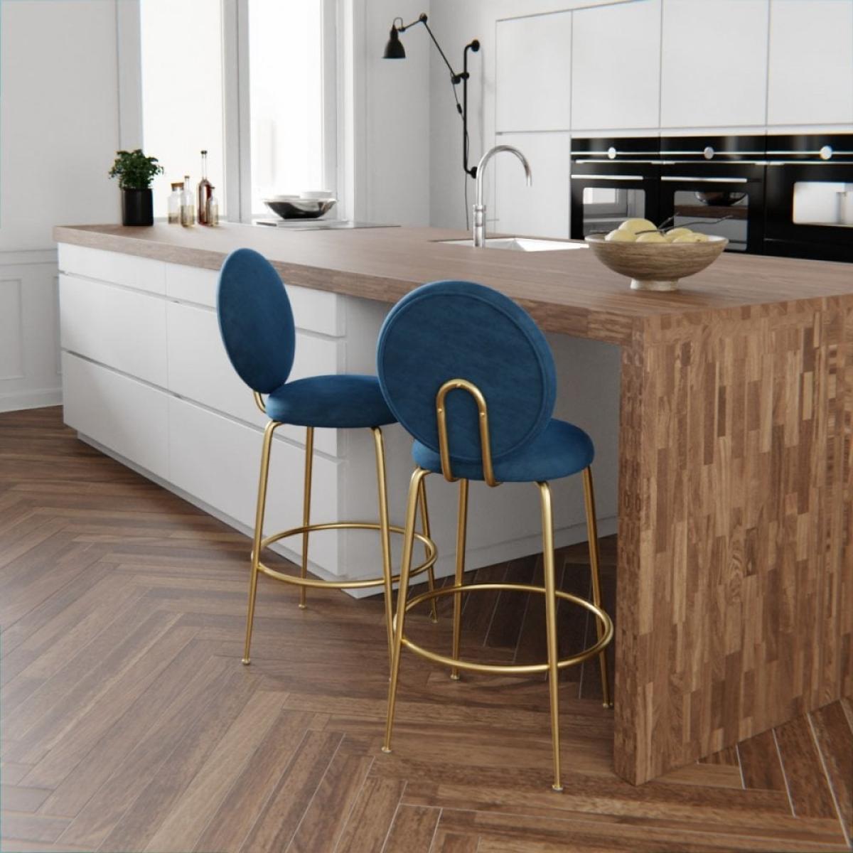 I love this barstool because of its modern yet plush look, with the midnight blue velvet adding a touch of luxury without feeling overly formal. Its backrest offers essential support, making it practical for extended seating, and the gold legs give it a sophisticated edge. It works beautifully in contemporary kitchens with a hint of glamour, or in eclectic spaces where a pop of colour and texture is wanted. For styling tips, pair it with marble or dark wood surfaces to enhance its richness, and consider adding cushions or throws to customise the look further. It’s versatile enough to fit into both casual breakfast bars and more refined cocktail areas, making it a real star piece for various interior styles.