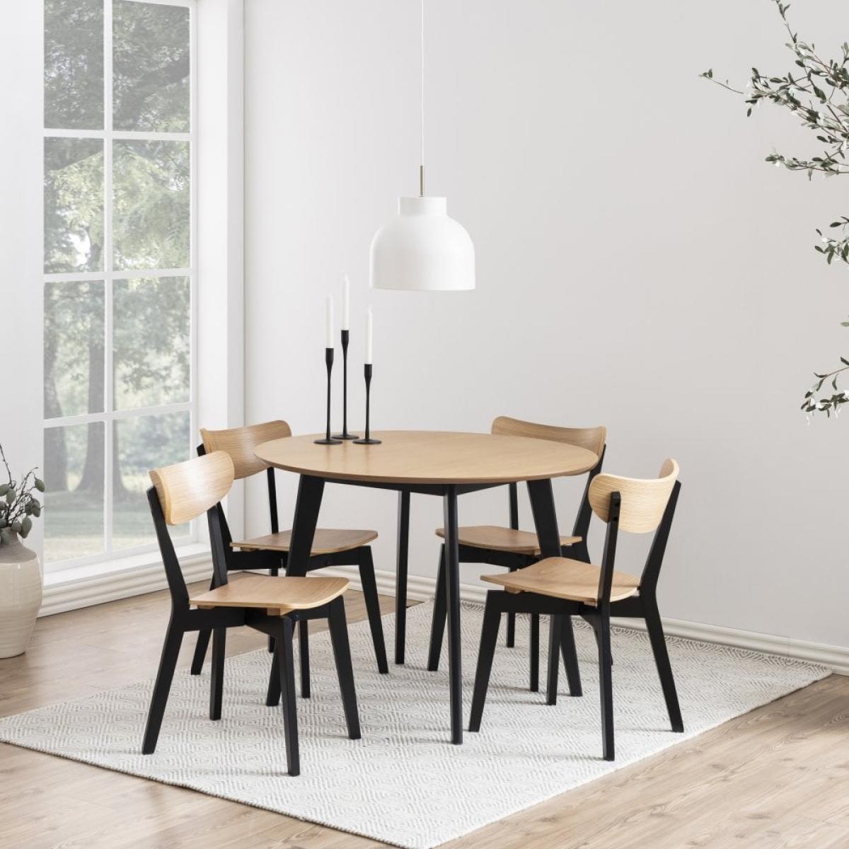 £20 Off Roxby 4 Seat Round Wooden Dining Table, Oak & Black