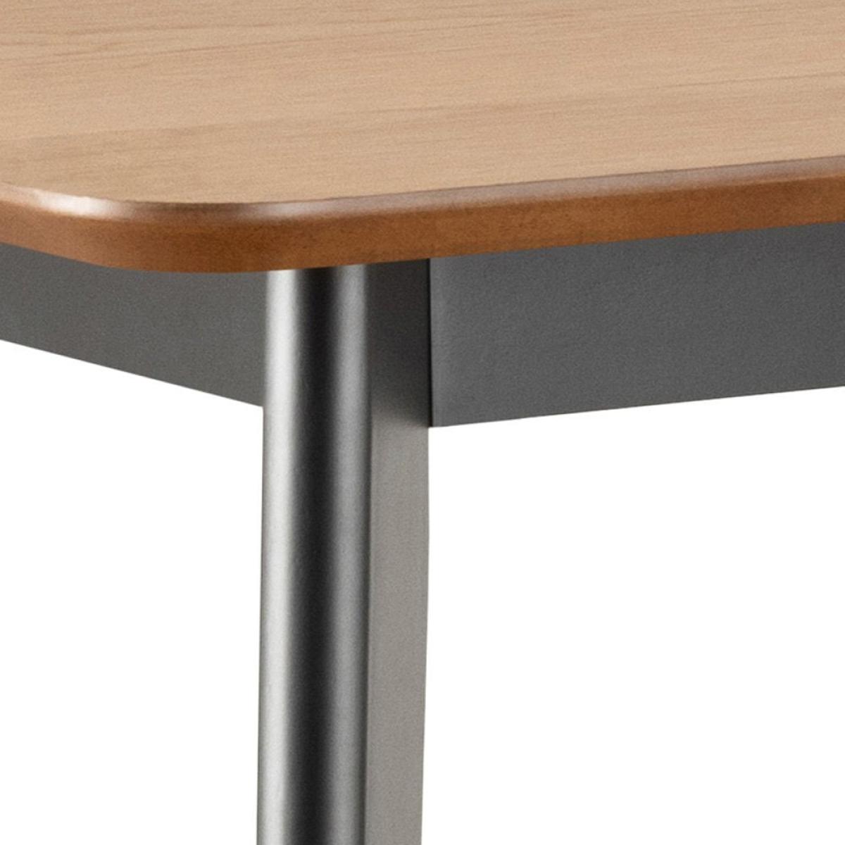 I love this bar table because of its sleek mix of oak and black finishes, which lends itself well to modern and industrial interiors. It's a versatile piece that can work just as well in a kitchen breakfast area as in a basement bar or entertainment space. For styling, consider pairing it with minimalist bar stools or even using it as a console table in a living room. To keep the look cohesive, add some statement lighting overhead and consider a few decorative accessories like small plants or contemporary barware. Its practical size makes it perfect for creating a functional yet stylish focal point in smaller or open-plan spaces.