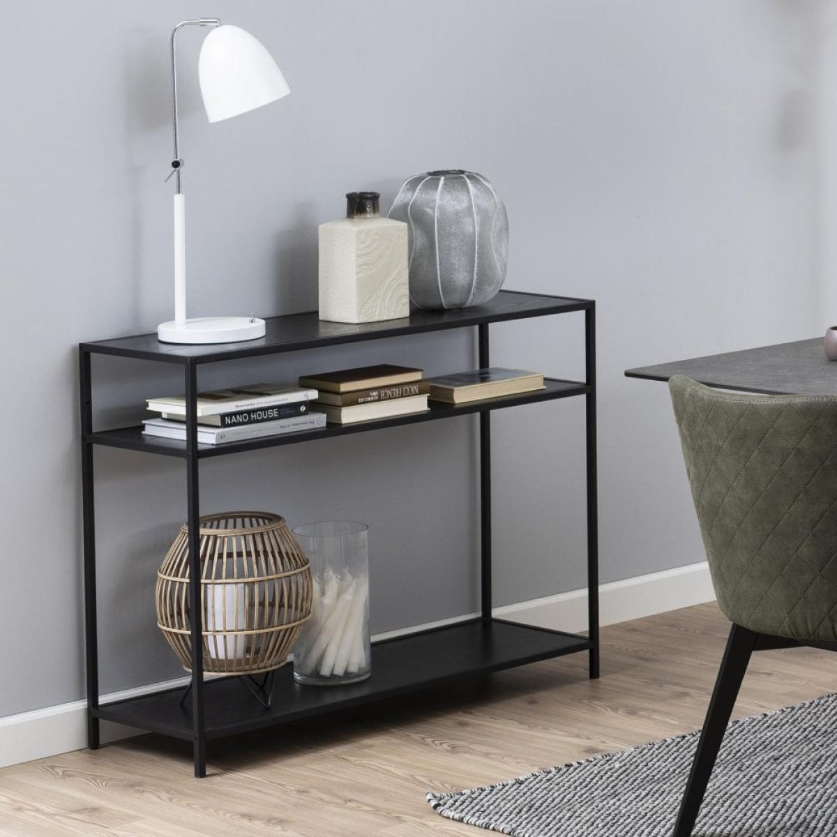 This Seaford Console Table is designed to last. Its sleek metal frame has a black powder-coated finish, while the black tabletop and shelves provide ample space for storing essentials. This table is the perfect addition to your hallway or living area, which can blend with many styles of decor. View The Seaford Range