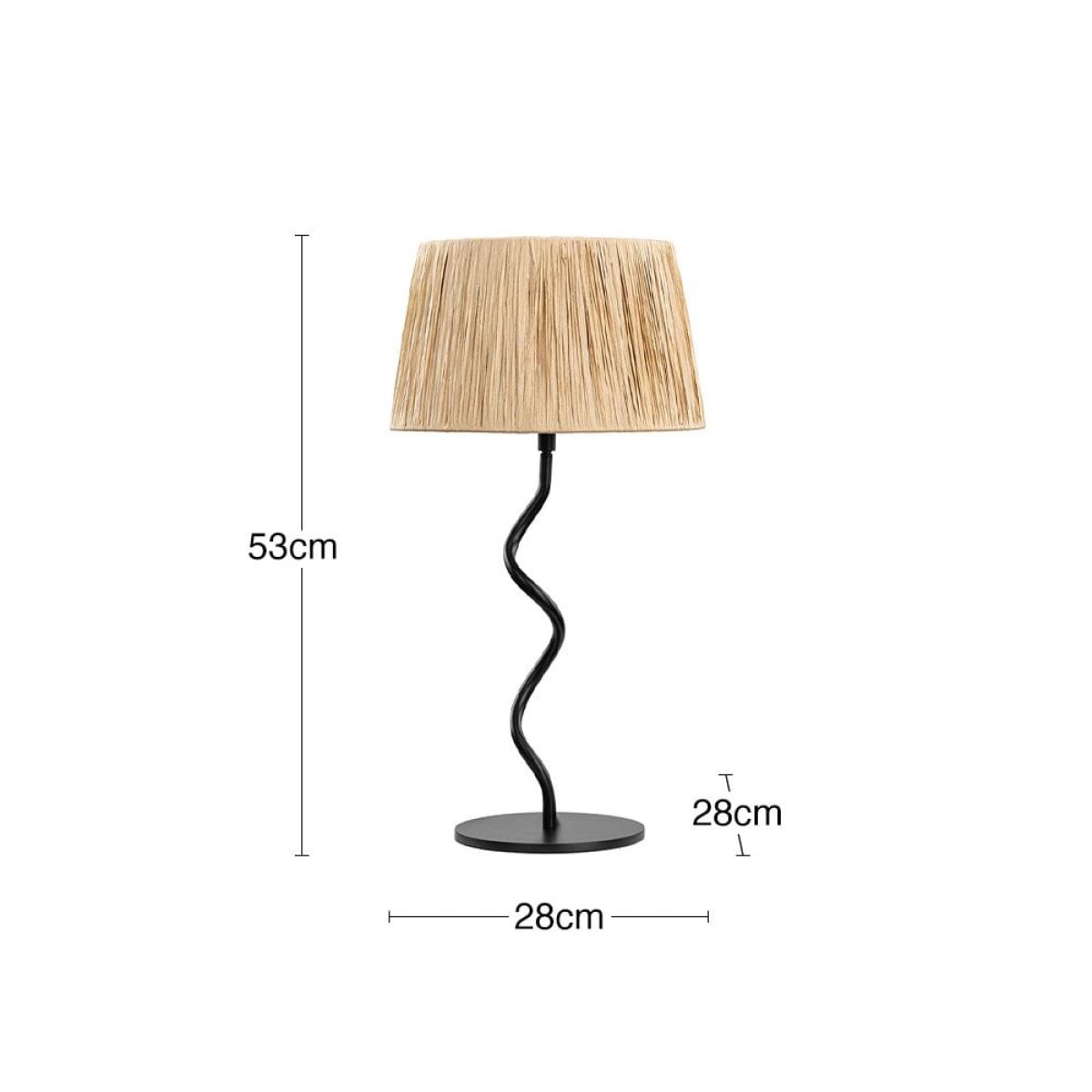 A modern take on Country Luxe meets Nordic-inspired minimalism, the Stanmore Table Lamp brings light to dark corners and contemporary style into living spaces with ease. Ideal for bedrooms and lounge spaces, the waved black metal stem is wrapped in a natural raffia shade, that perfectly diffuses the light.