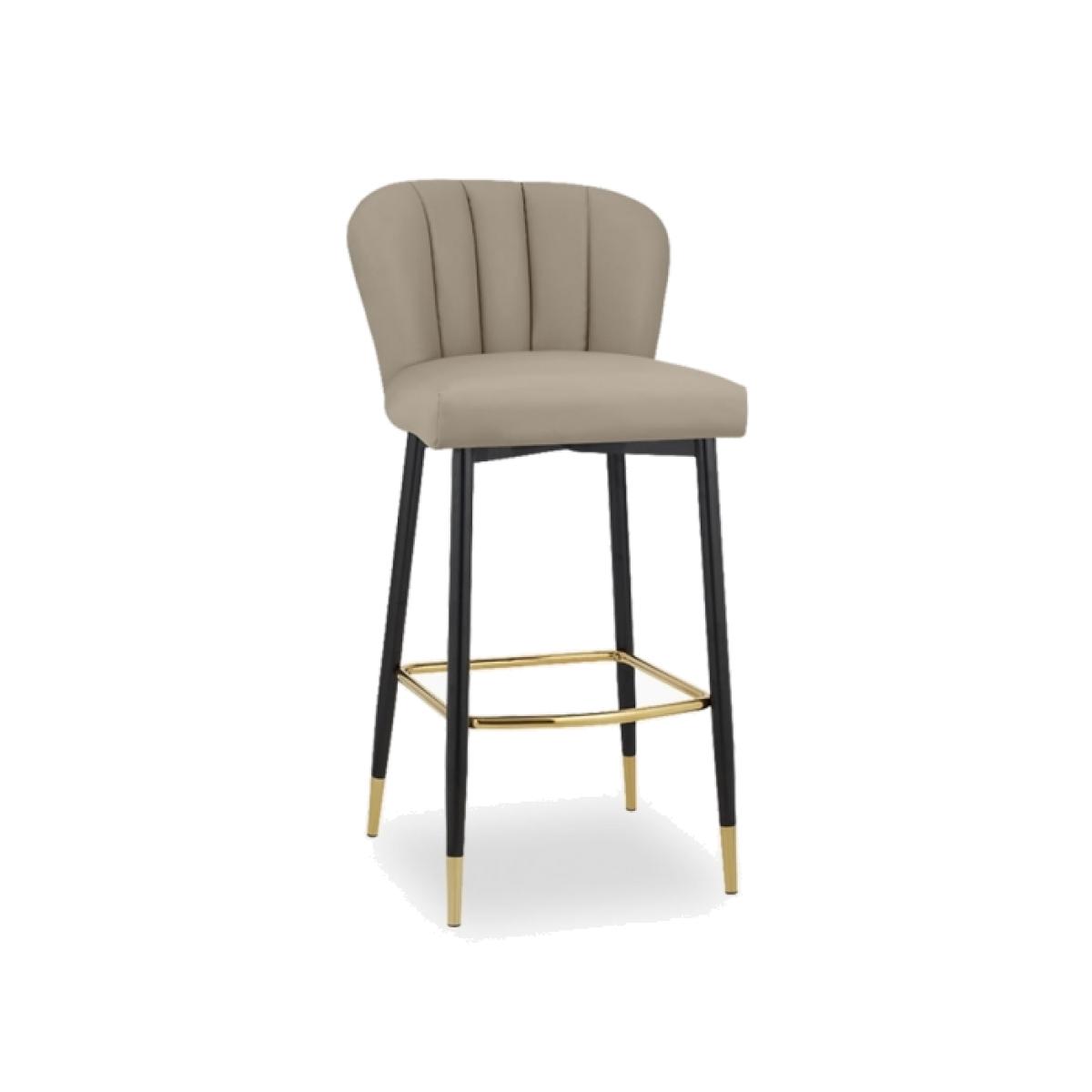 The Tribeca Art Deco bar stool is upholstered in taupe faux leather and makes a welcome addition in any home bar or kitchen island. The padded seat and backrest have vertical stitched details and a gold footrest, perfectly placed to bring comfort to you and your dining space. Choose from a variety of colours to match your interior. Then style alongside other velvet furniture items and accessories, finishing with a hanging pendant light from our range of opulent lighting. View The Tribeca Range Seat Material:Faux Leather Leg Material: Metal Assembly:Partial Assembly Required Download Assembly Instructions Care:Wipe clean with a dry cloth/li> Dimensions Seat Height: 78cm Total Size: H 107 x W 45 x D 46cm. Buy your Cult Living Tribeca Bar Stool, Taupe from a wide range of Furniture, Chairs, Table & Bar Stools