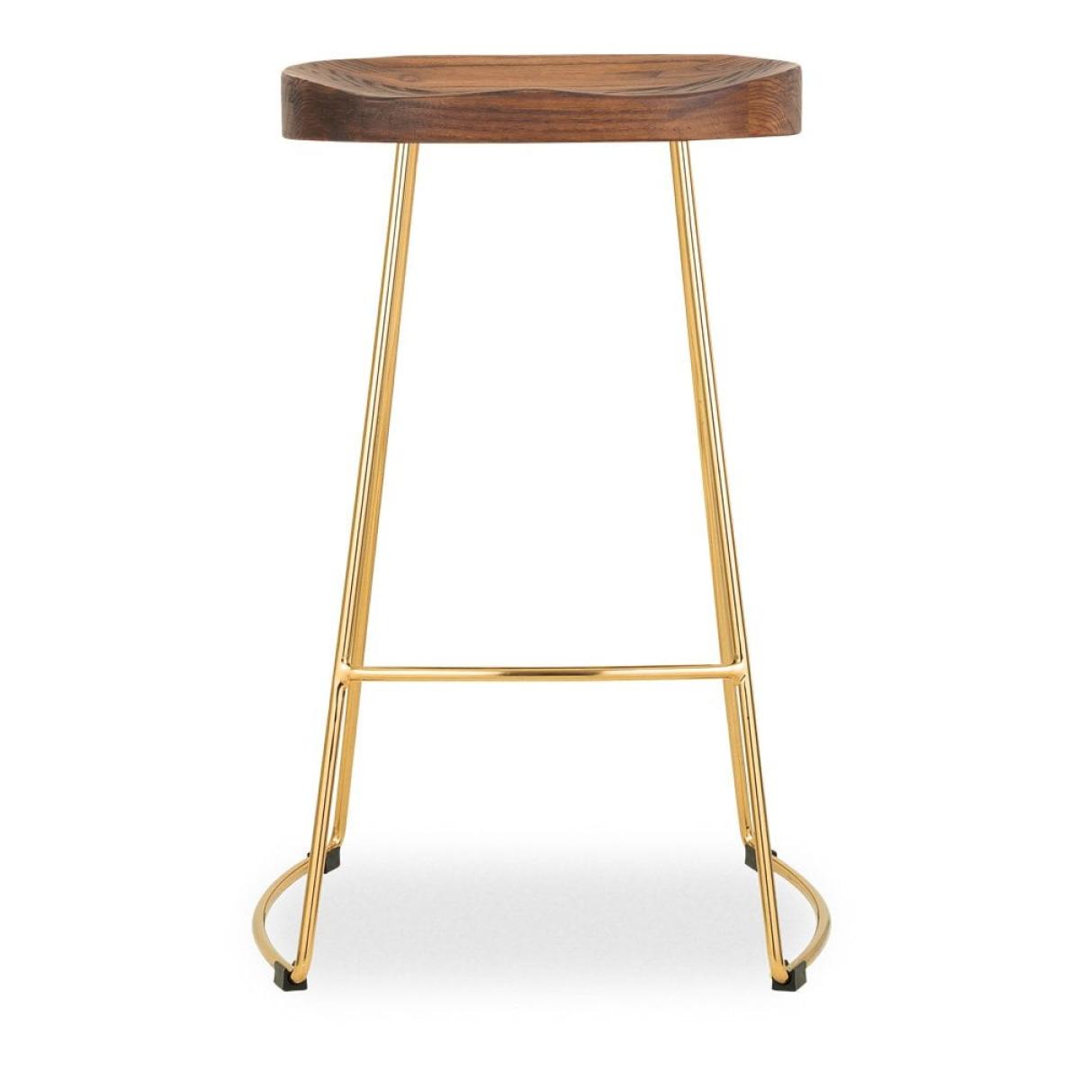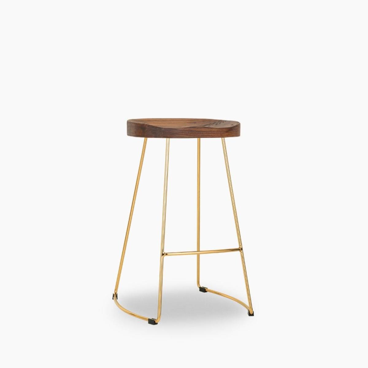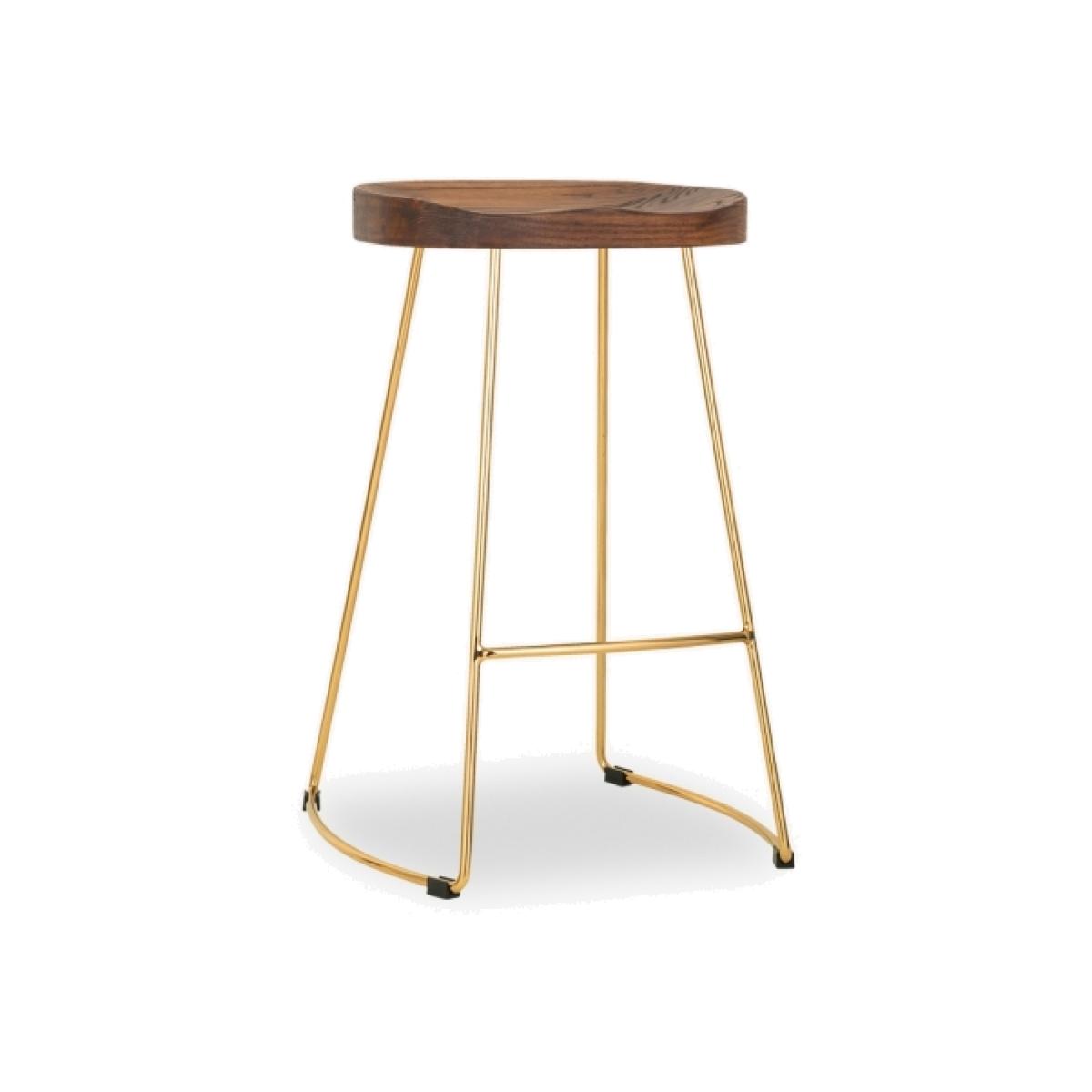 £20 Off Victoria Metal Kitchen Stool, Elm Wood & Brass Seat Colour: Dark Wood Seat