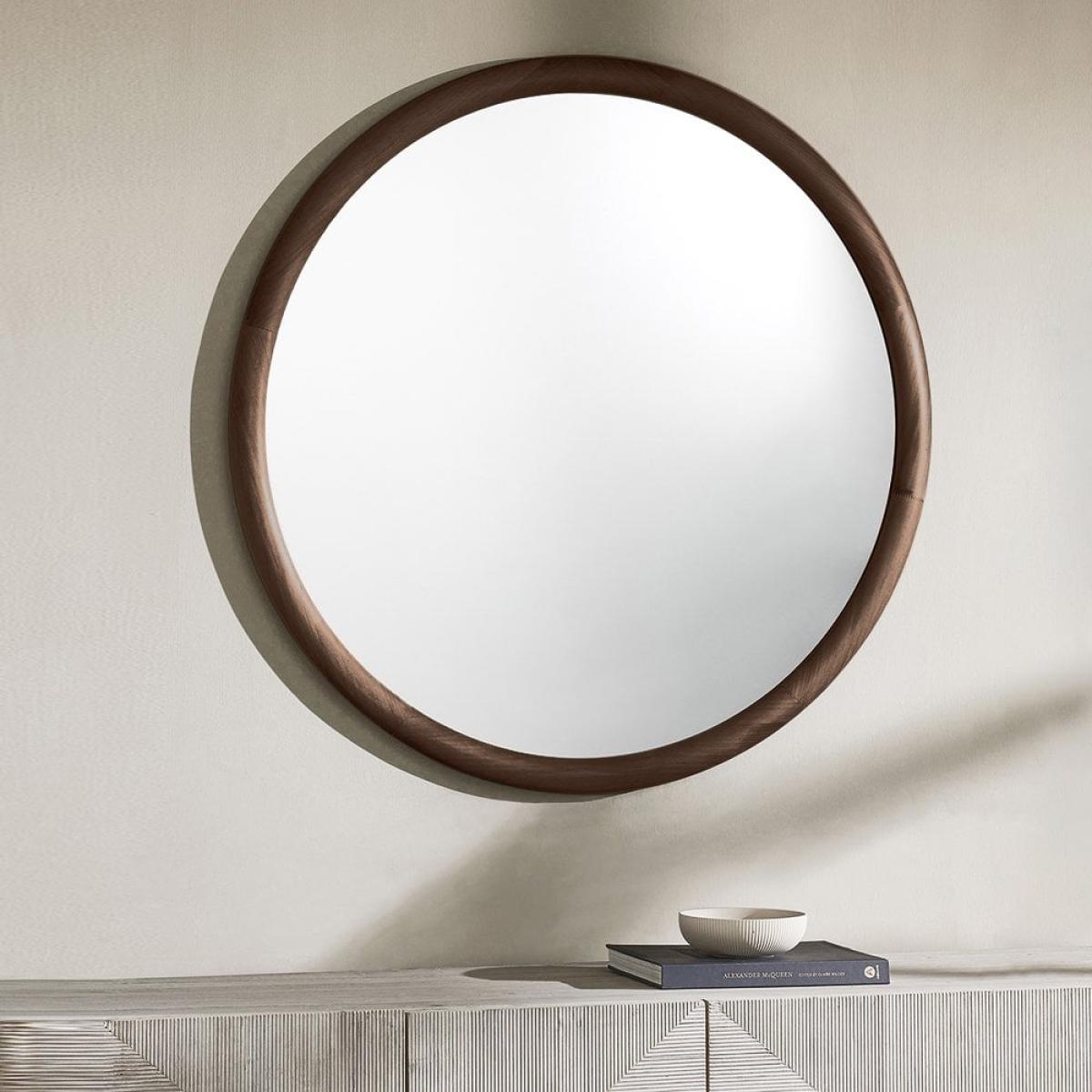 I’m a fan of this walnut-framed round mirror because its simple silhouette and warm wood tone slot easily into both contemporary and Scandi-inspired schemes. The slim profile keeps it from feeling bulky, while the rich walnut colouring adds depth against pale or neutral walls. Styling tip: hang it above a hallway console or bedroom dresser and pair with a small ceramic bowl or a couple of stacked books for everyday essentials. You can also use it opposite a window to bounce natural light, or create a small mirror gallery by combining it with a few contrasting shapes and sizes for added interest.