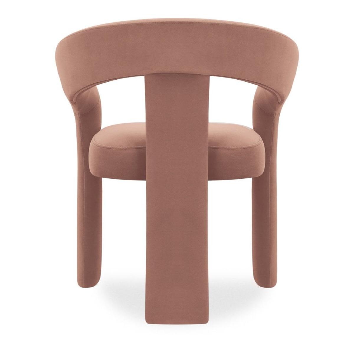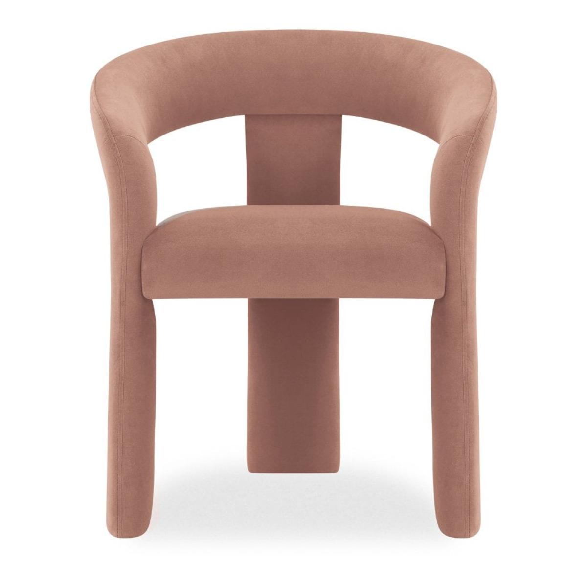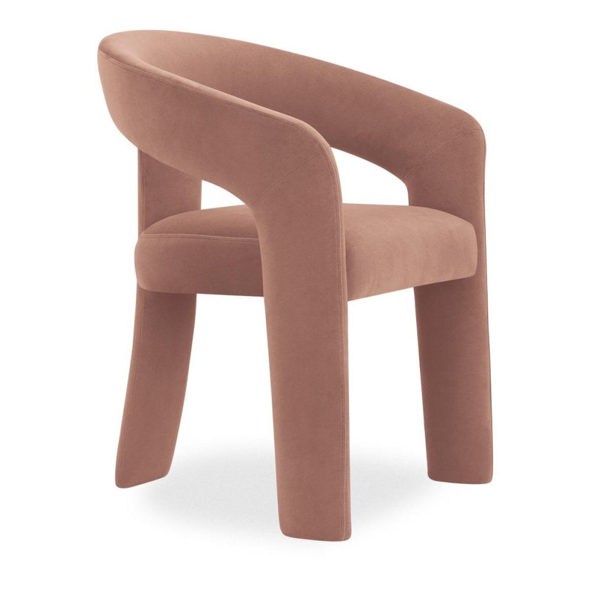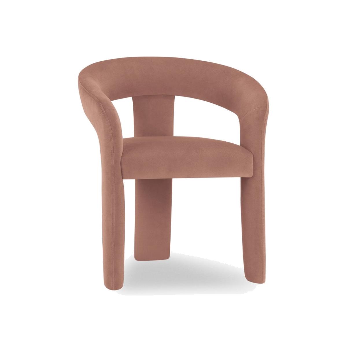 A statement piece for any modern dining room, the Bellamy Velvet Dining Chair is upholstered in sustainable velvet in a neutral blush pink hue from top to toe, for that desirable minimaluxe look. In a cool yet comfortable shape, this sculptural chair with a tubular silhouette takes the flowing curves and lines of contemporary furniture design to inject high-end style into your home. Especially designed by Ebbe Gehl for Cult, the U-shaped back with cutouts makes for a spacious seat, that is also padded for comfort. For a rich depth of colour and unique softness, our velvet used in this product is not only of the highest quality but it is made from 100% recycled PET yarns so it is kinder to the environment too.