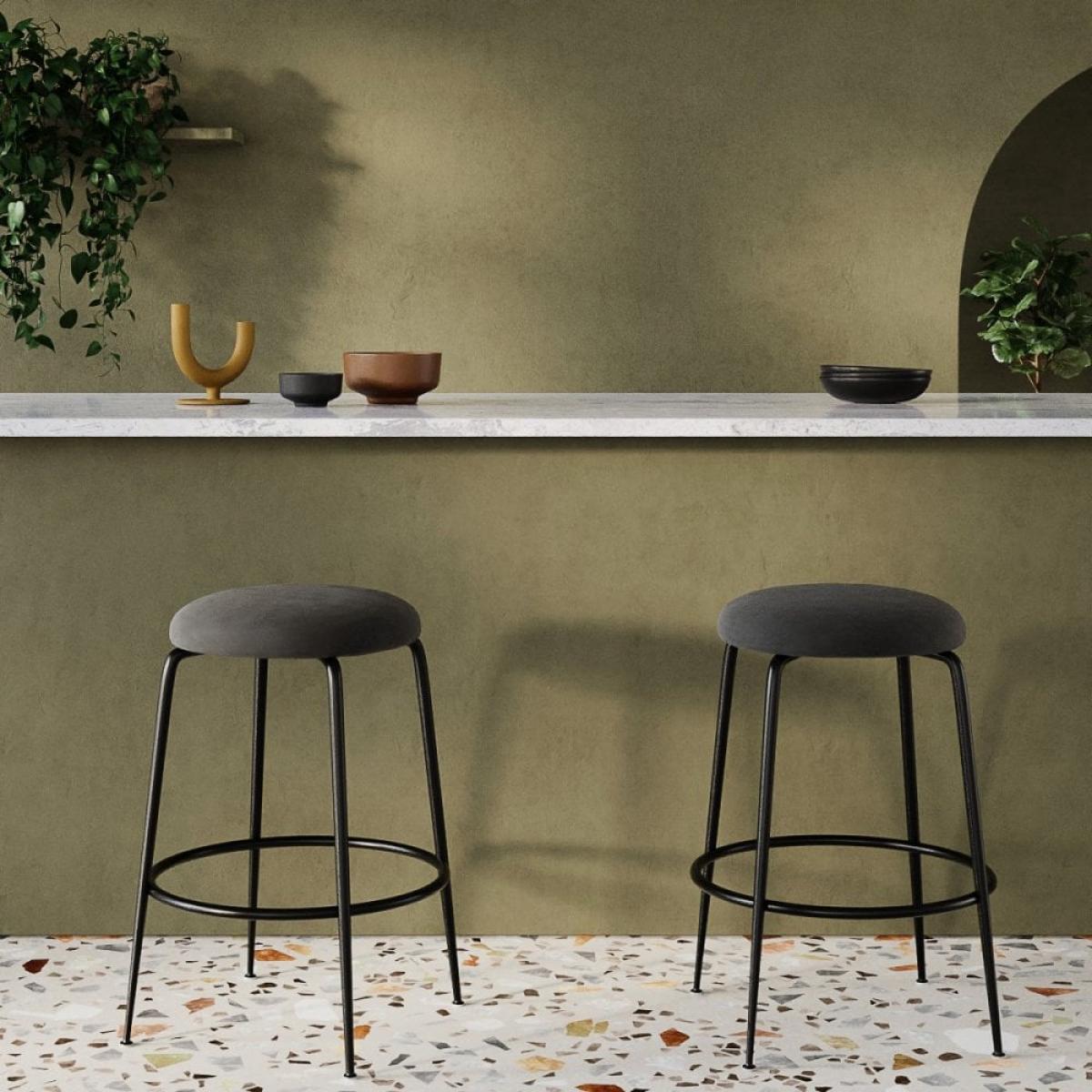 I really rate the Regent stool for its slim black metal frame and soft grey velvet seat - it brings just the right hint of texture without overwhelming a space. Its neat footprint works brilliantly in compact kitchens or open-plan areas styled in modern, Scandi or minimalist schemes. Pair it with light timber tops and matte black accents for a cohesive look, or contrast against white cabinetry and industrial pendants. The built-in footrest adds everyday comfort, and the wipe-clean velvet makes it both stylish and practical.