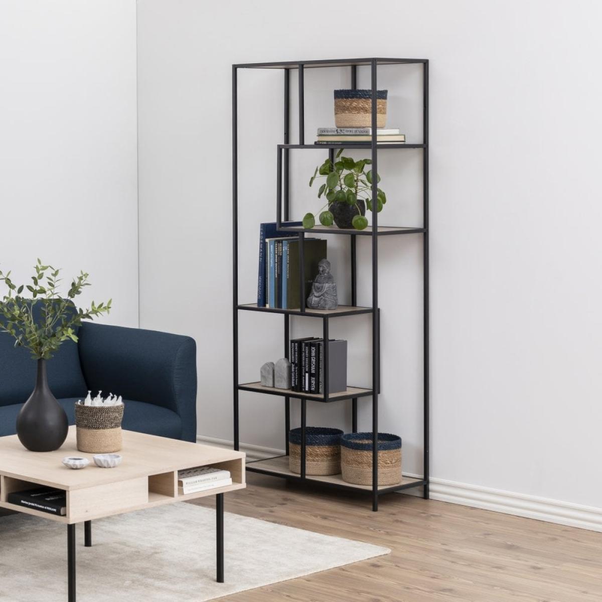 I’m a fan of this Seaford unit because its slim black metal frame paired with oak-effect shelves strikes the right balance between industrial edge and Scandi warmth. It works particularly well in modern living rooms, home offices or entryways where you need a light, airy feel rather than a bulky bookcase. For styling, vary the heights of objects across the shelves - try pairing a low plant pot next to a tall vase - and group items in threes for visual impact. Leave a couple of shelves clear or sparsely decorated to maintain that open, uncluttered look.