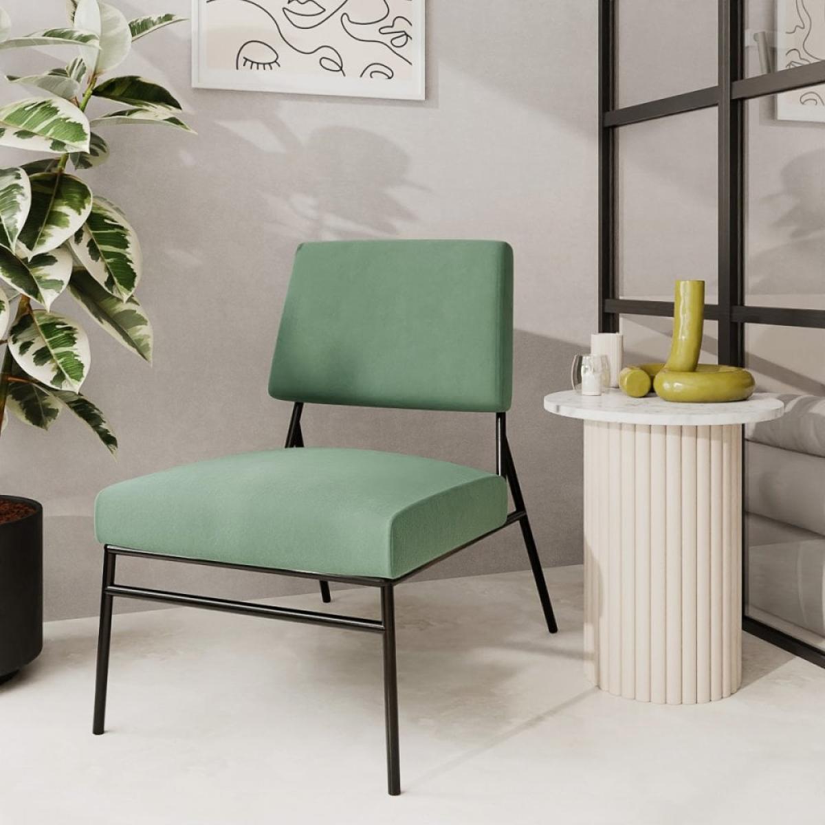 The perfect seat for living areas and bedrooms alike, the Holly Accent Chair boasts a velvet upholstered backrest and padded seat in soft sage green with a black metal frame - adding a contemporary design element to your living space. With a simple frame reminiscent of Scandinavian design, and a deep seat for maximum comfort, we can't get enough of the Holly.
