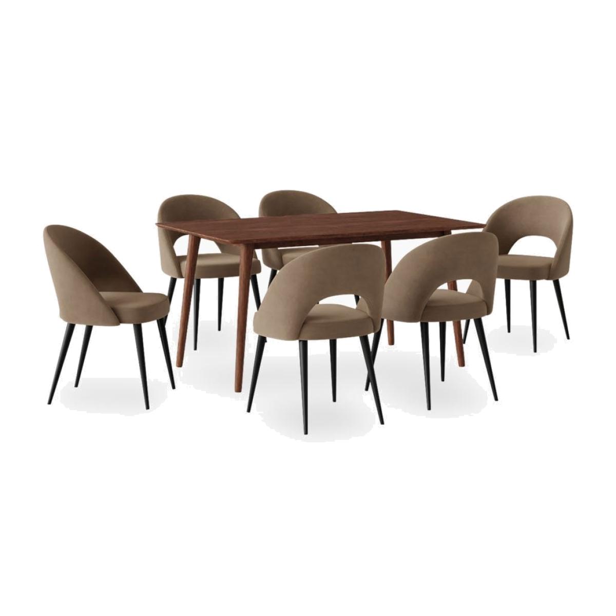 £250 Off Milton & Lucille 6 Chairs Dining Set, Walnut & Taupe Sustainable Velvet