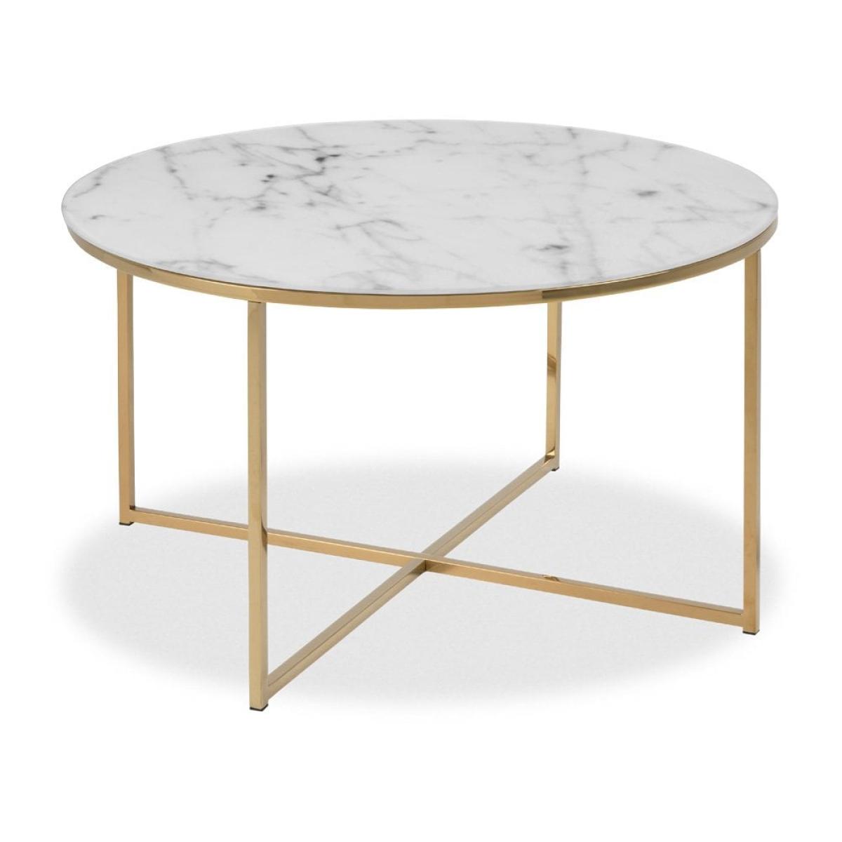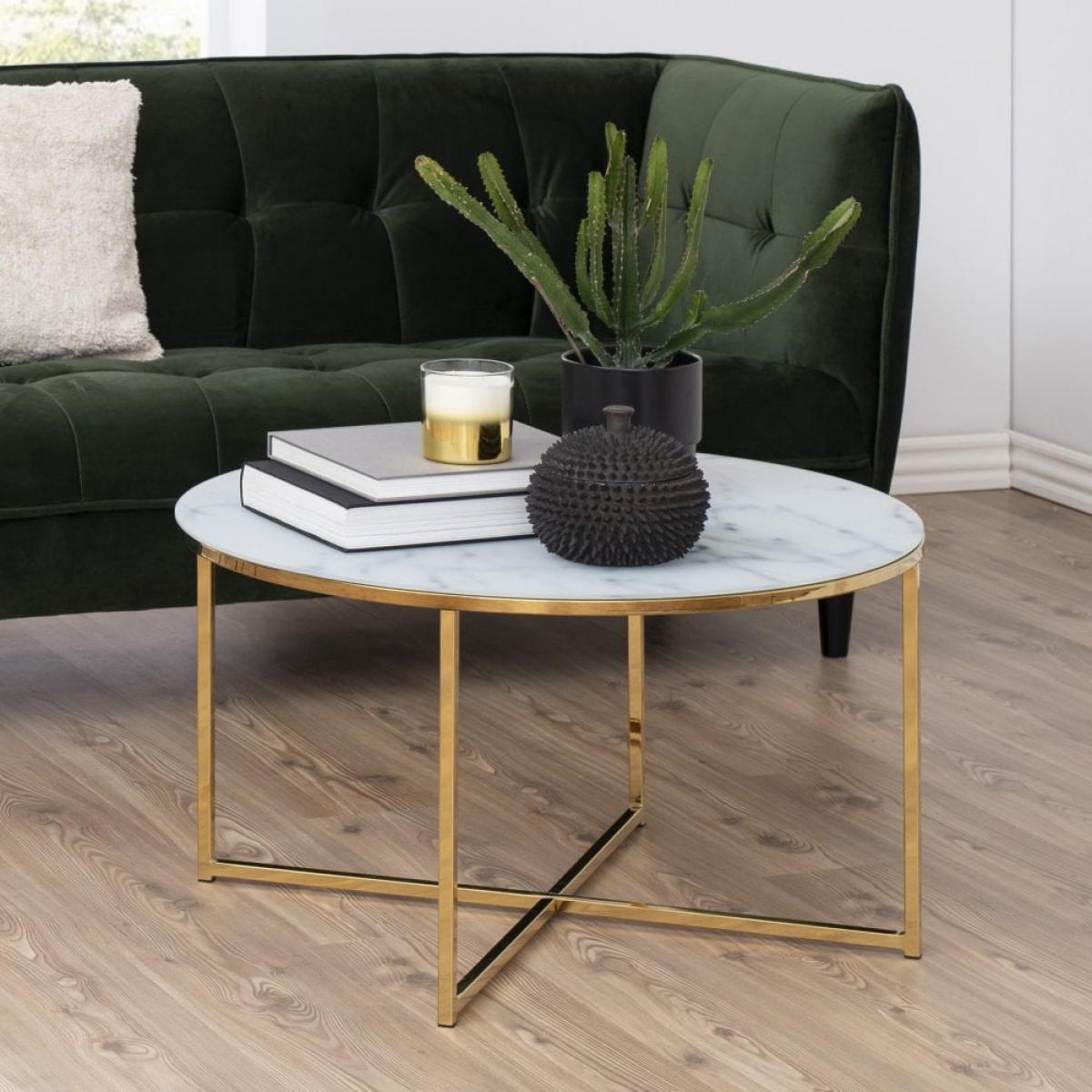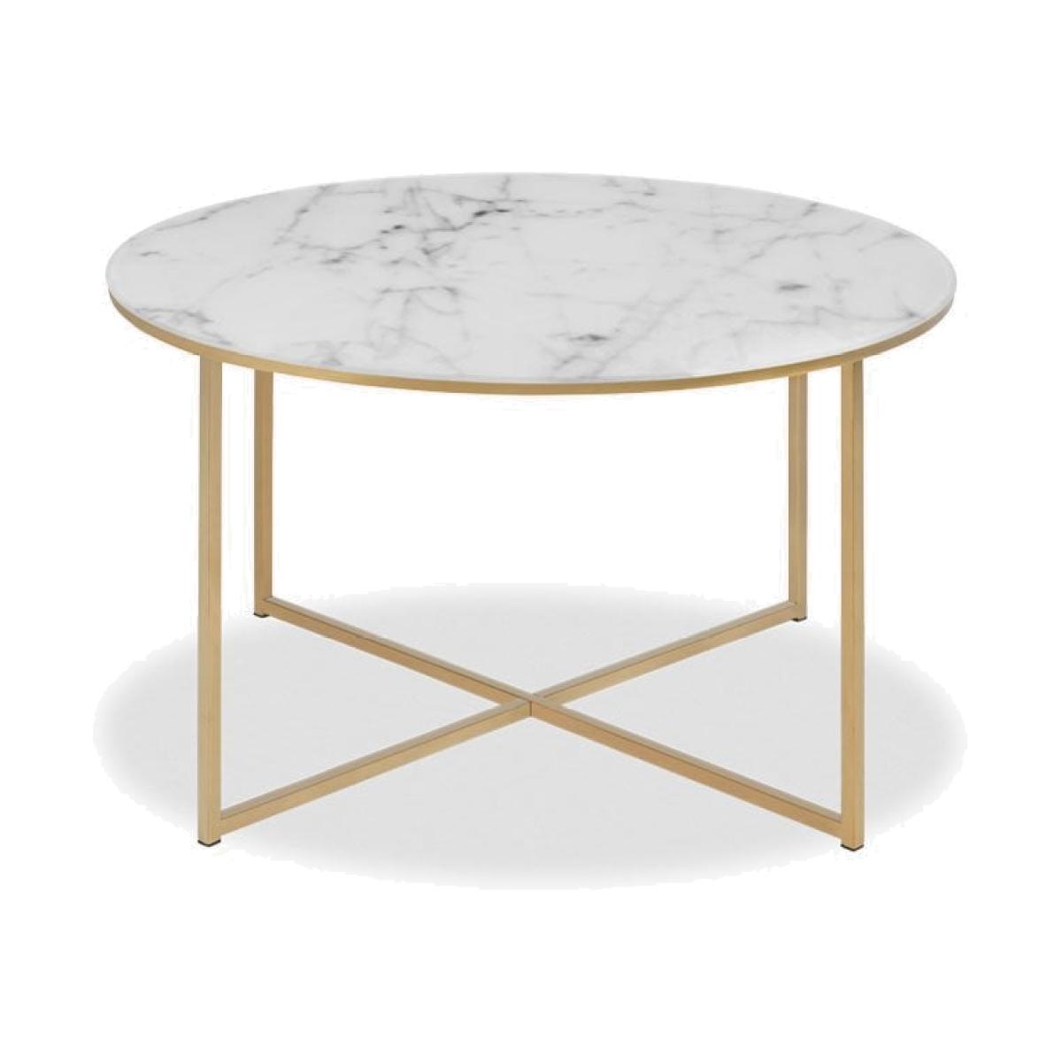 £30 Off Alisma Round Coffee Table, White Marbled Glass & Brass