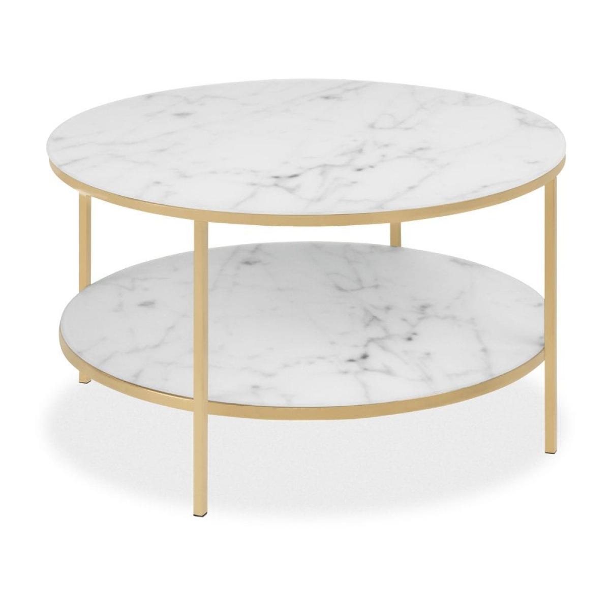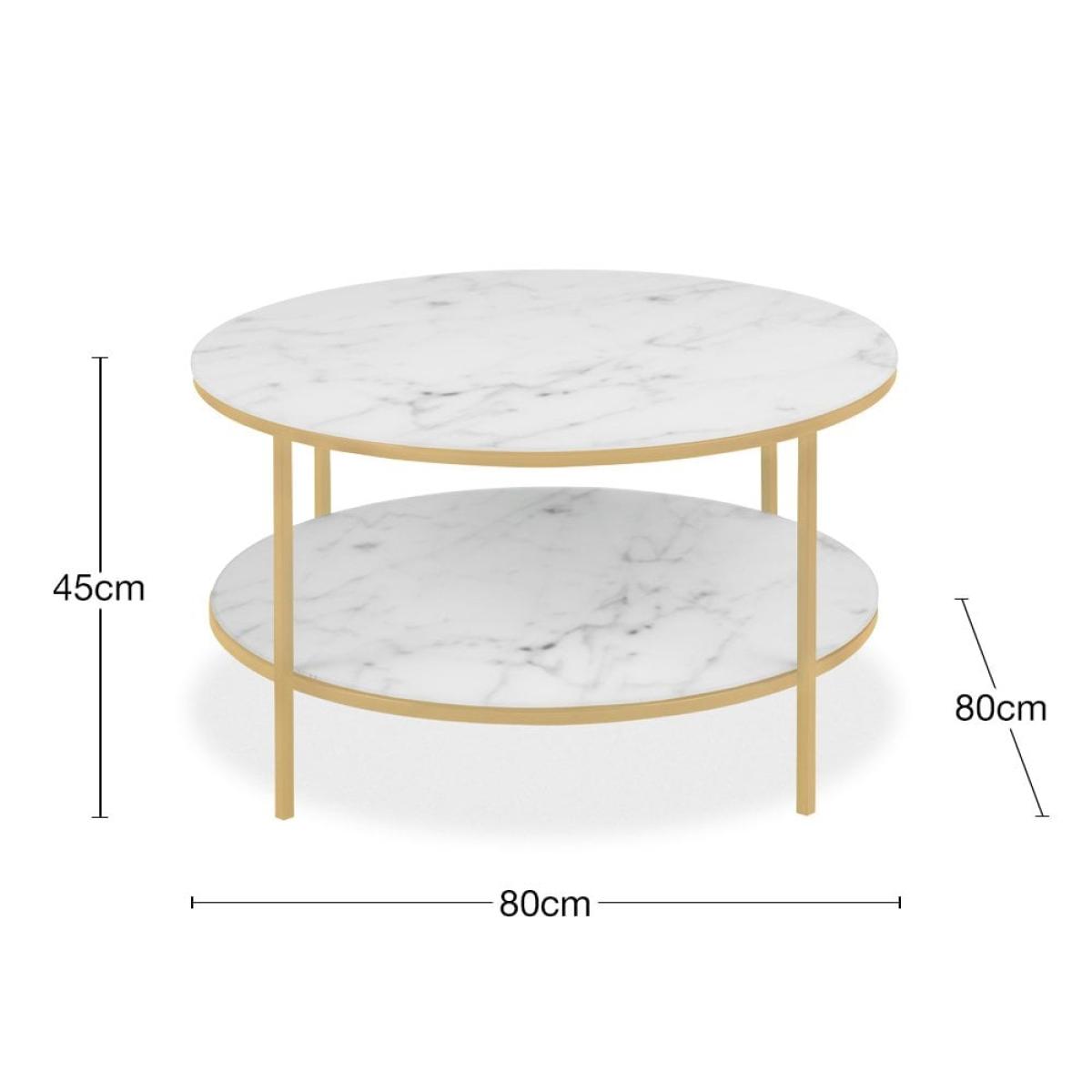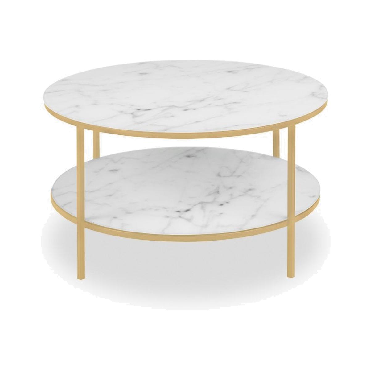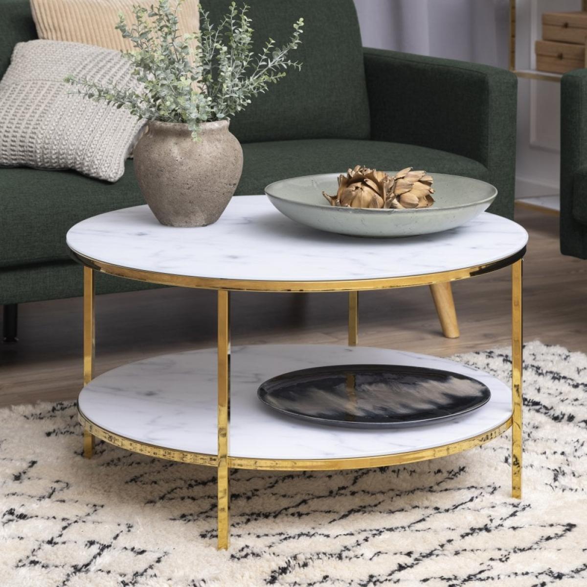 £30 Off Alisma Round Coffee Table with Shelf, White Marbled Glass & Brass