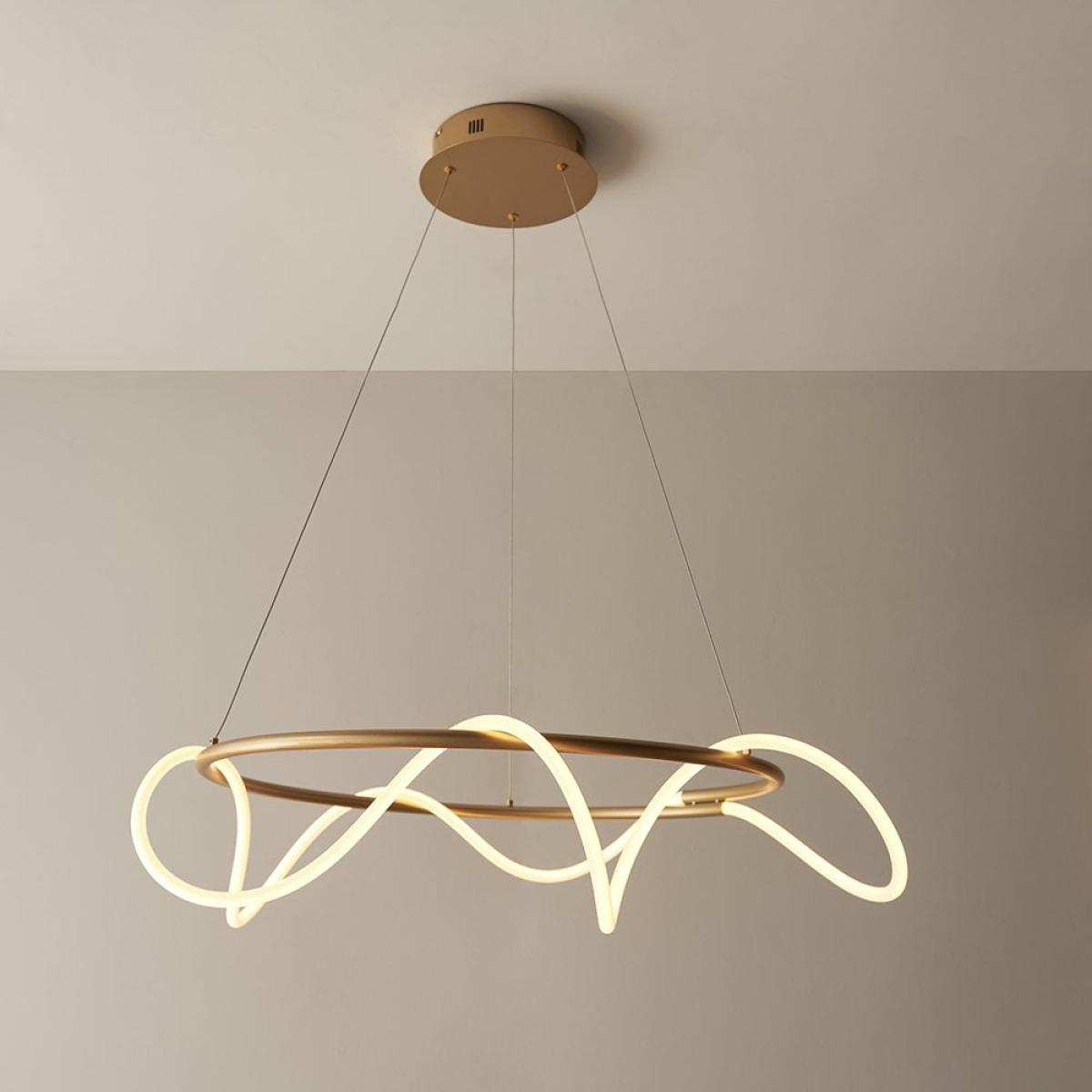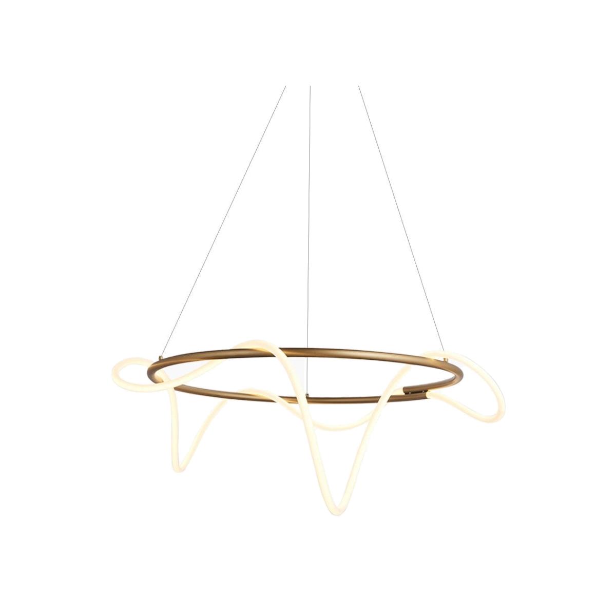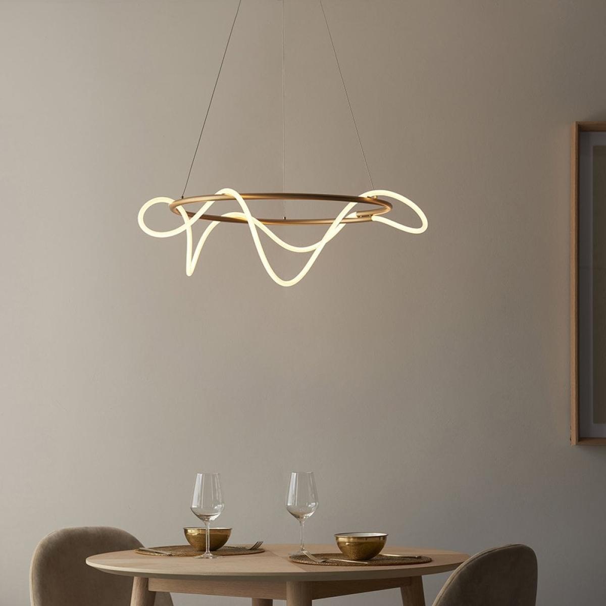 Contemporary design that is created by you. The Attalea Pendant Light features a striking LED silicone tube that can be moved into position to suit your space. The warm white lighting casts an artistic and refined glow across your living space, with the flex also being height-adjustable. The LED silicone tube is wrapped around a satin gold metalwork base and light fixture.