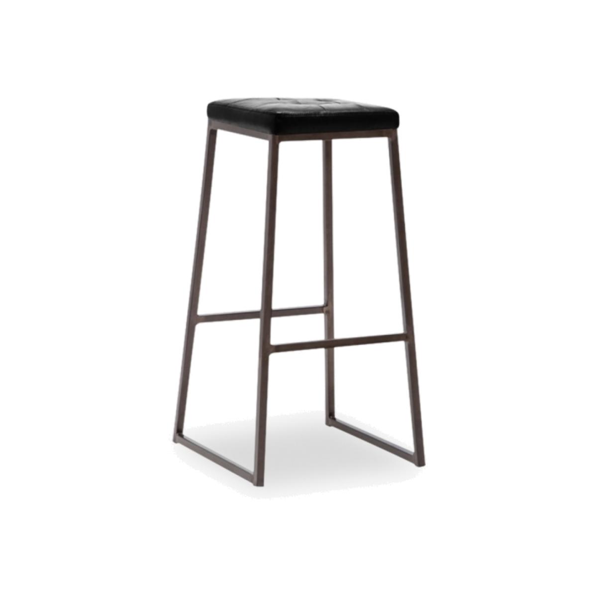 Add personality to your bar or kitchen area with the Consec Bar Stool. Featuring a black faux leather seat and a metallic base, the Consec stool proves that contrast is the key to a stylish room. Choose from a range of heights, colours and metal finishes taking your bar and kitchen island to the next level. View The Consec Range Seat Material: Faux Leather Leg Material: Metal Care: Wipe with a dry cloth Note: The industrial metal finish of gunmetal may result in slight colour differences due to the natural qualities of the material. Each piece is unique and may vary slightly from the imagery shown. Dimensions Seat Height 75cm Total Size: H 78 x W 42 x D 42cm Seat thickness 3cm. Buy your Cult Living Consec Metal Bar Stool, Black Leg Colour: Rustic from a wide range of Furniture, Chairs, Table & Bar Stools