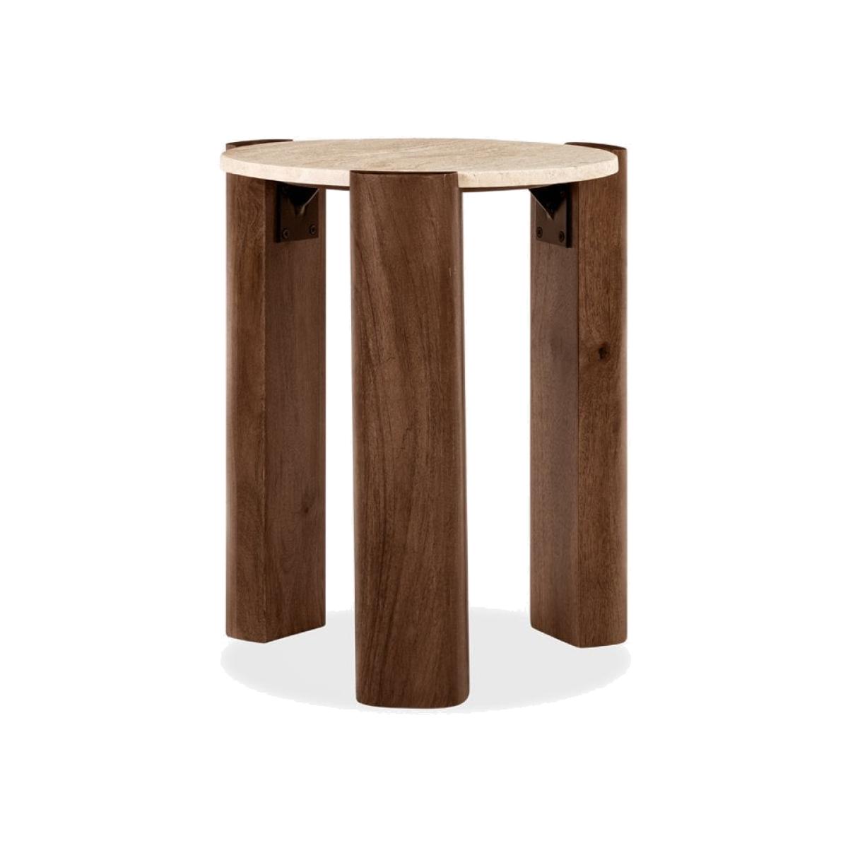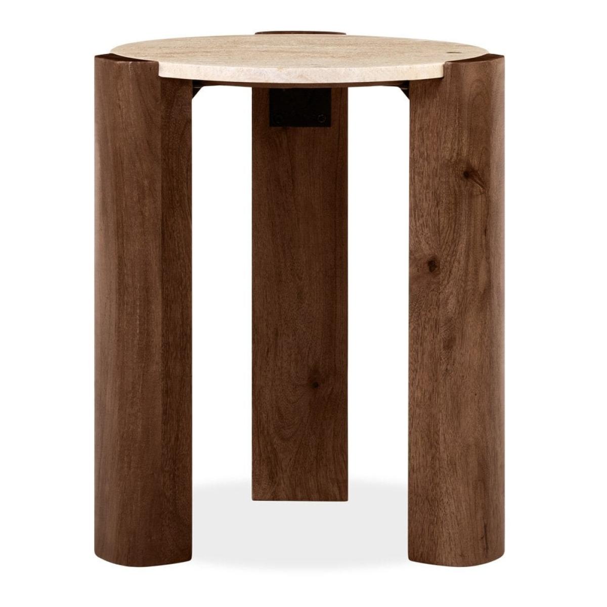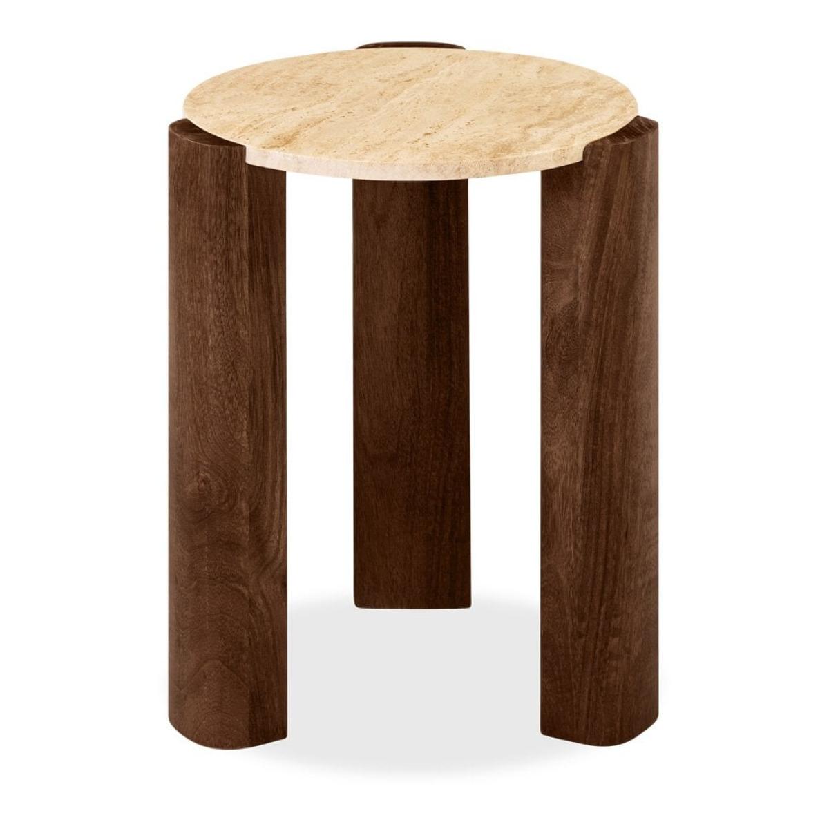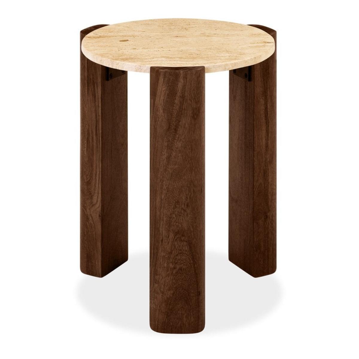 £30 Off Emil Round Side Table, Dark Mango Wood & Travertine