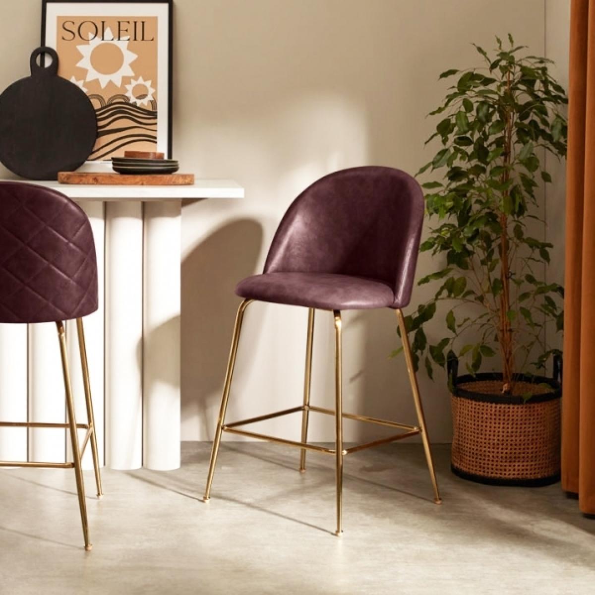 £30 Off Heather Bar Stool, Dark Red Leg Colour: Brass