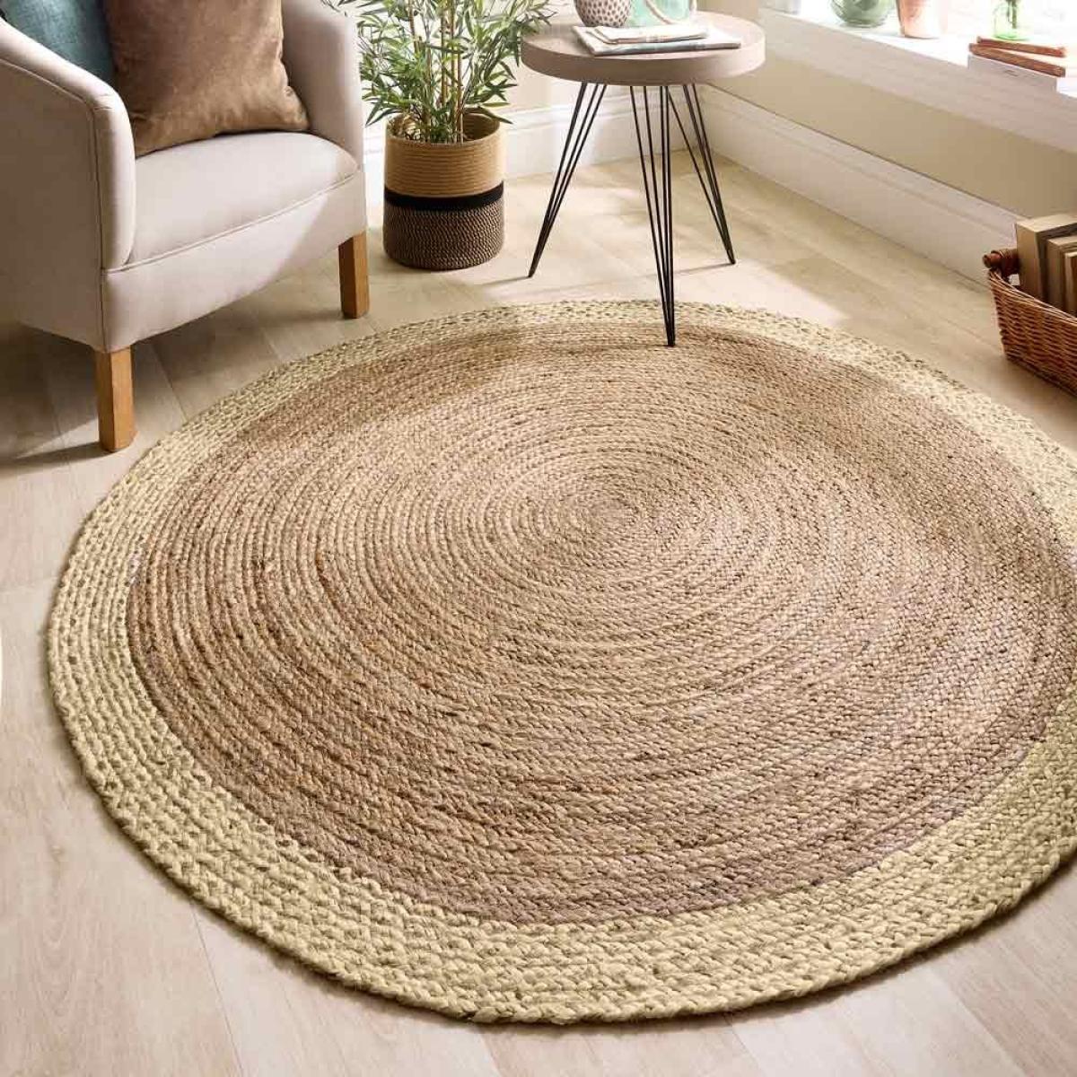 £30 Off Jenson Border Jute Circular Rug, White Modern Designed Rugs, Colourful Contemporary Rug