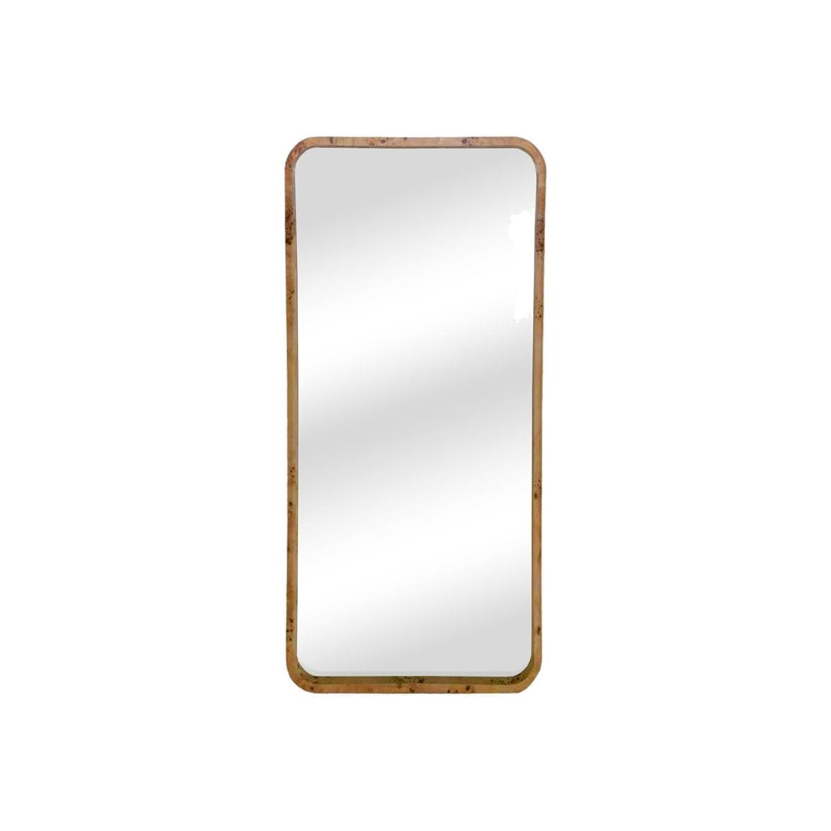 An understated shape with a luxurious burl wood frame, the Kolson Full Length Mirror is a classic mirror, ideal for opening up spaces. The elegant curved edges of the burl wood frame soften harsh interiors and complement 70s wooden pieces throughout the home. The naturally occurring knots of burl wood offer a one-of-a-kind piece with distinctive patterning. Can be hung both vertically and horizontally. Burl wood is formed by distinctive knots and grains within the wood to create intricate patterns for a rich and detailed piece of home decor. Celebrated for its individuality, each piece of burl wood is unique. All these differences are part of what makes this wood unique and beautiful.