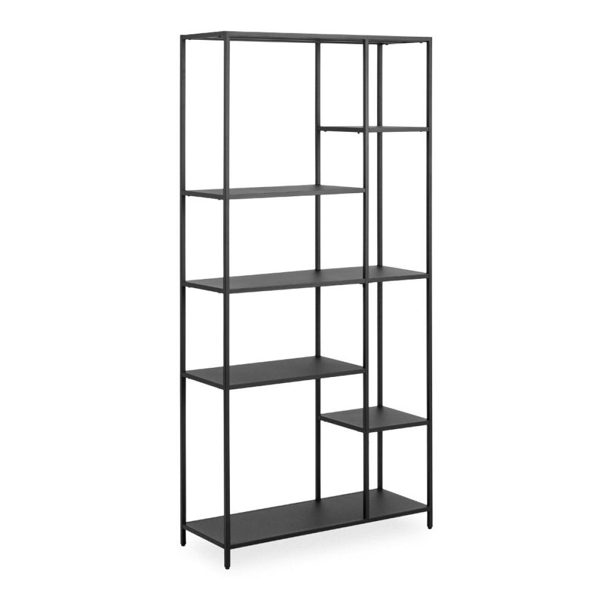 The Newcastle industrial bookcase features smooth black metal shelves in a sleek streamlined black metal frame; a simple, modern design for your space. With bountiful room across six shelves, it's perfect for storing away clutter in your home office, dining room, or living room. View The Newcastle Range