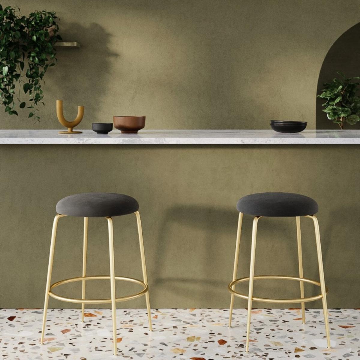 £30 Off Regent Kitchen Stool, Sustainable Grey Velvet Leg Colour: Brass
