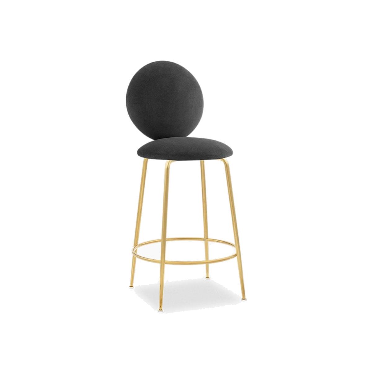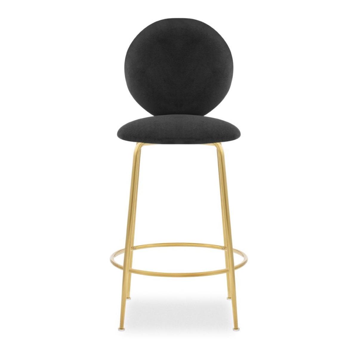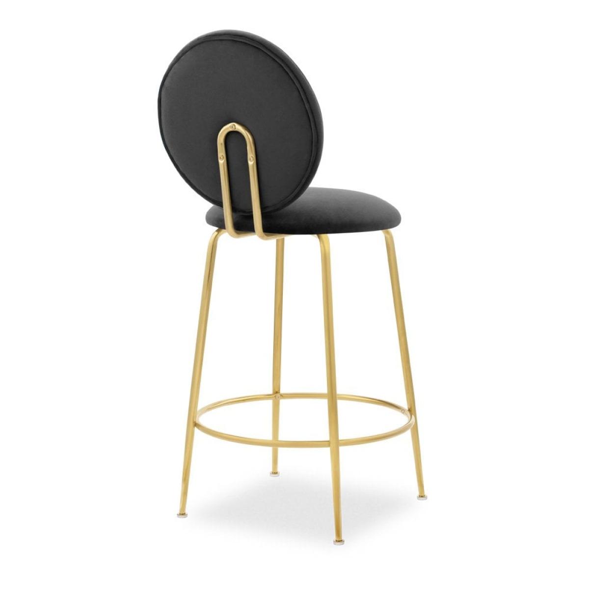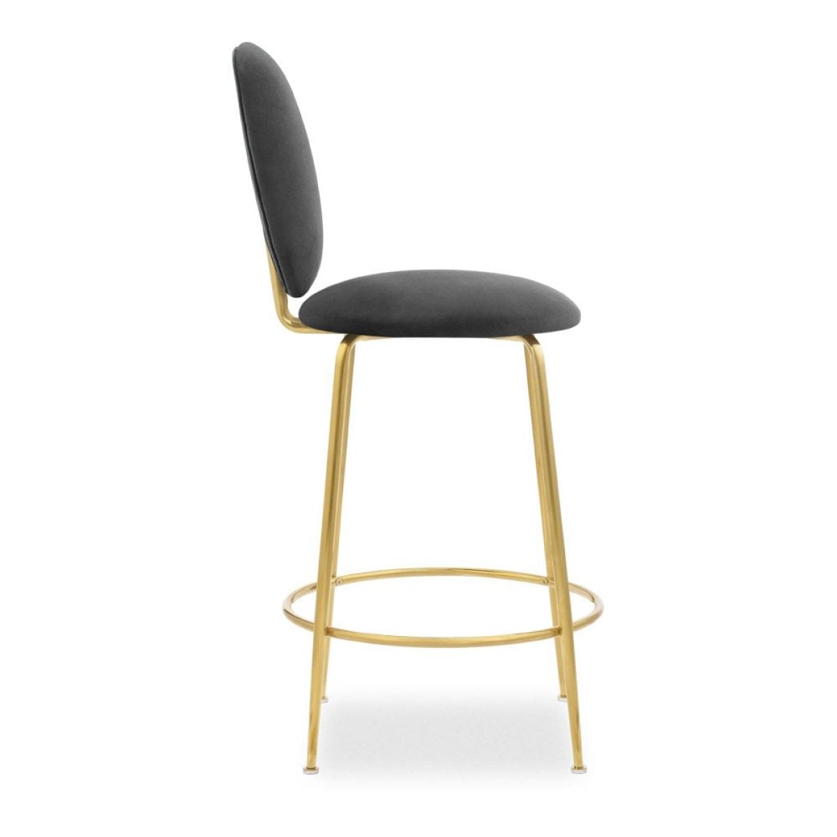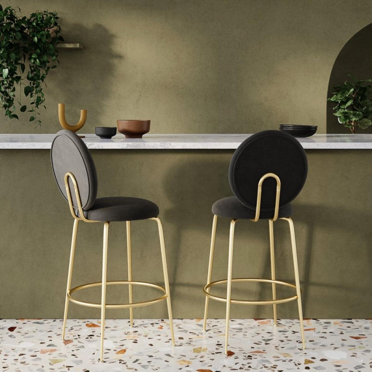 £30 Off Regent Kitchen Stool with Backrest, Sustainable Grey Velvet Leg Colour: Brass