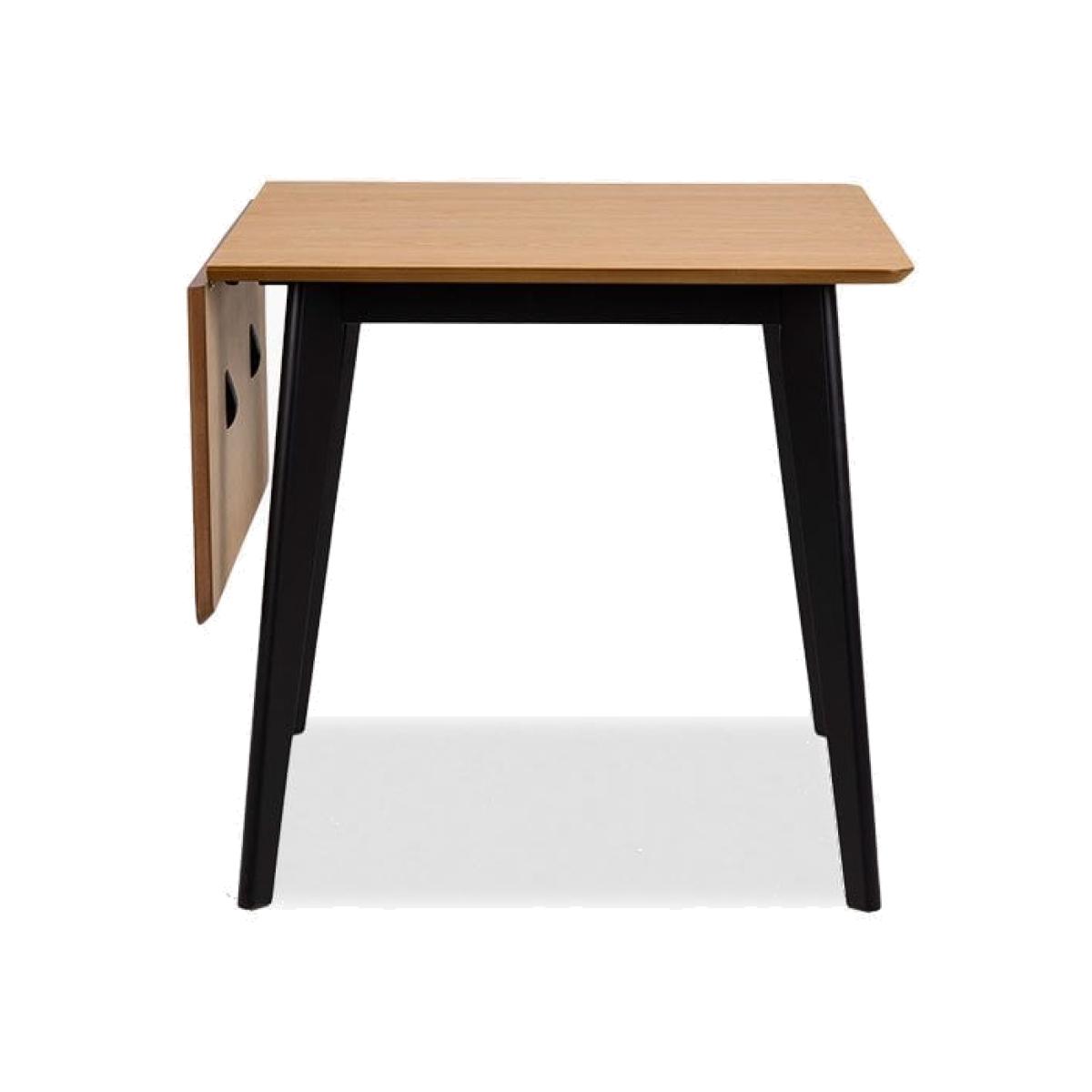 This retro-inspired Roxby Extendable Dining Table has hints of mid-century design in its silhouette to give a vintage 70's feel to your dining room or kitchen. Featuring an oak veneer table top with an angled black wood frame, the Roxby is contemporary and convenient choice; perfect for modern open-plan living kitchen/living areas. Quickly cleaned and high quality, the extra tabletop space is perfect for compact spaces. View The Roxby Range Please Note: this table has an MDF underside edge allowing us to create a more slim-lined flying top effect. From a general view, this will not be noticed.