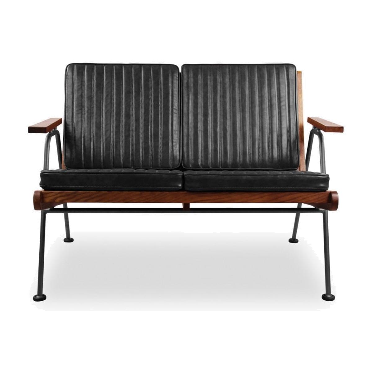 Catering to those who like their furniture with an industrial feel, this Wickham wood and metal two seater sofa, upholstered in black faux leather, will make every living room comfortable. Designed and inspired by Robin Day's Chevron Chair and made for the modern home. A contemporary, cool take on the accent chair, this small couch comes with padded seat and back rest and a trendy ridged design you won't want to get up from. Pair with the matching Wickham occasional chair for a coordinated look and don't miss our other upholstered pieces from loveseats to dining chairs.   View All Sofas & Armchairs  View The Wickham Range