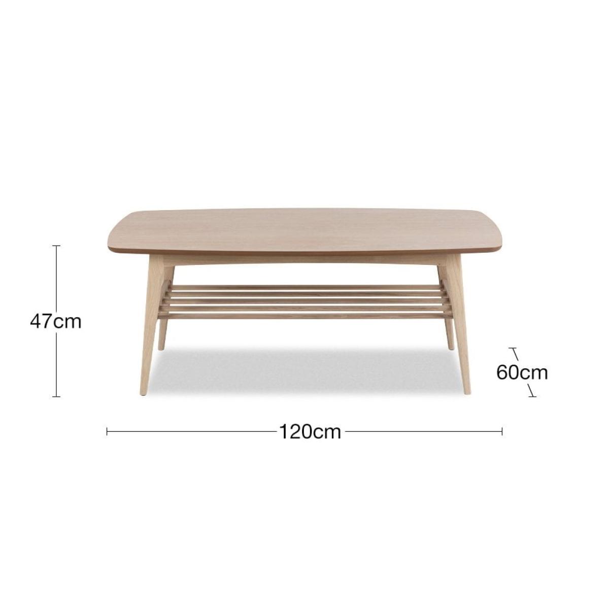 I love this coffee table because of its clean, minimalist design and warm light oak finish, making it highly versatile for various interior styles. It works particularly well in Scandi or contemporary living rooms, where its simple lines can be complemented with textured cushions, woven baskets, or metal accents for added interest. Practical styling tips include using the lower shelf for organising magazines or displays, keeping the surface clutter-free with a tray or decorative bowl, and pairing it with neutral-toned sofas or contrasting darker elements to create a balanced look. Its understated elegance makes it both functional and aesthetically pleasing, perfect for those seeking a subtle yet stylish addition to their living space.