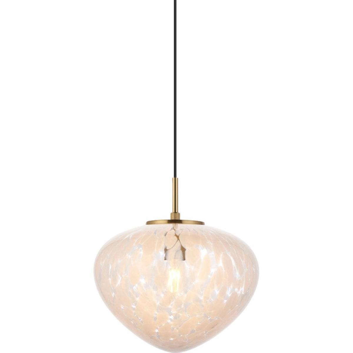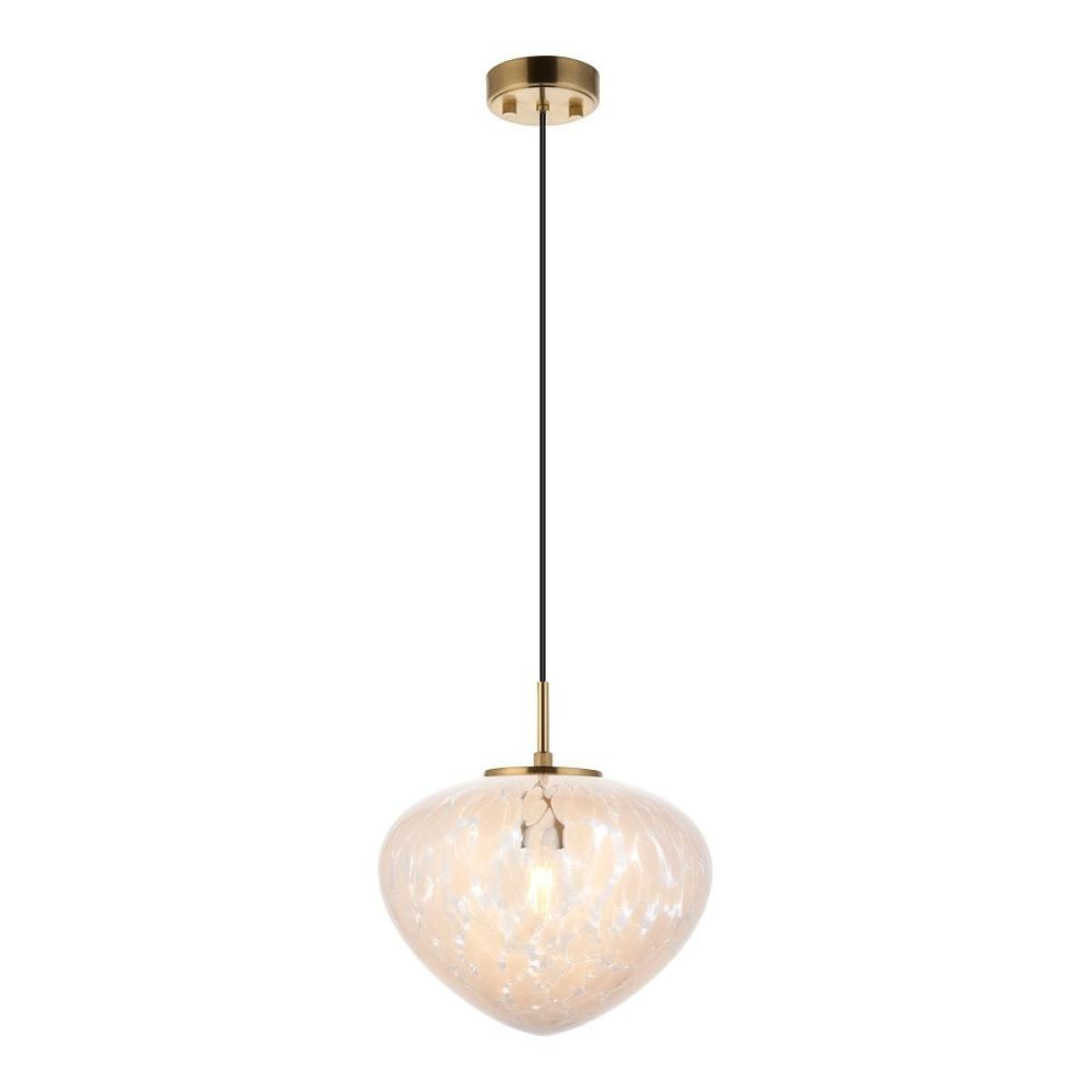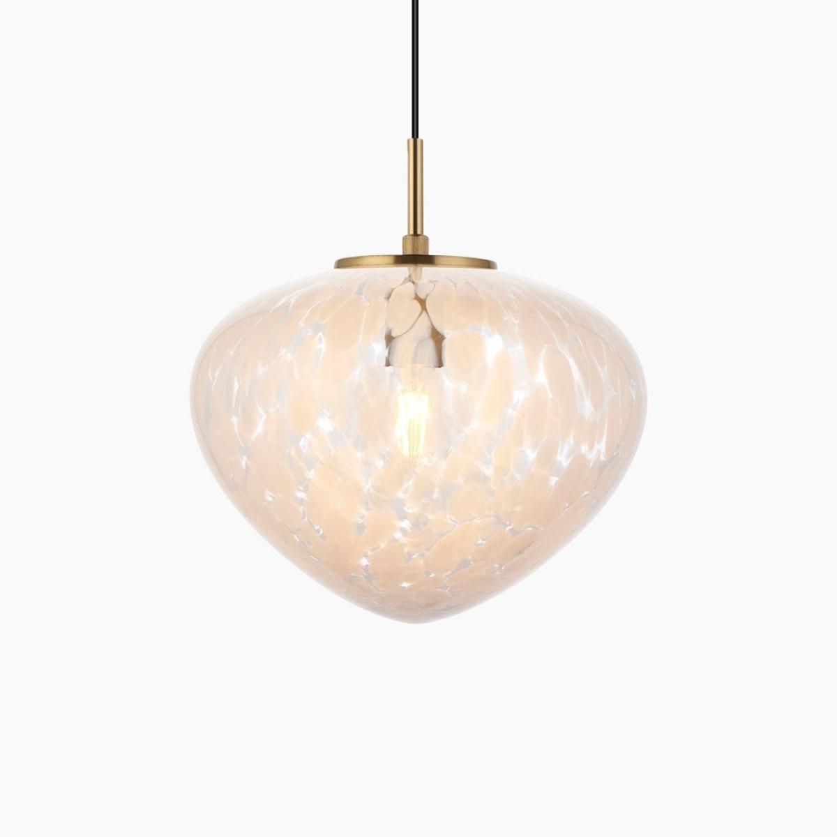 This Isla pendant light combines the beauty of blown glass and traditional brass crafts to create a luxury statement piece. The blown glass shade has white confetti glass, complete with a satin brass finished ceiling plate. This pendant can be adjusted in height depending on your requirements with a dimmable feature.