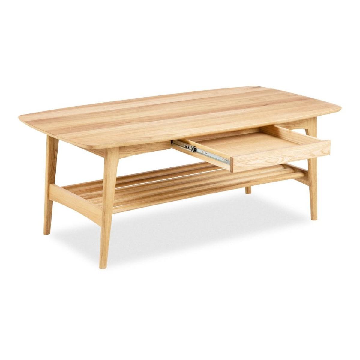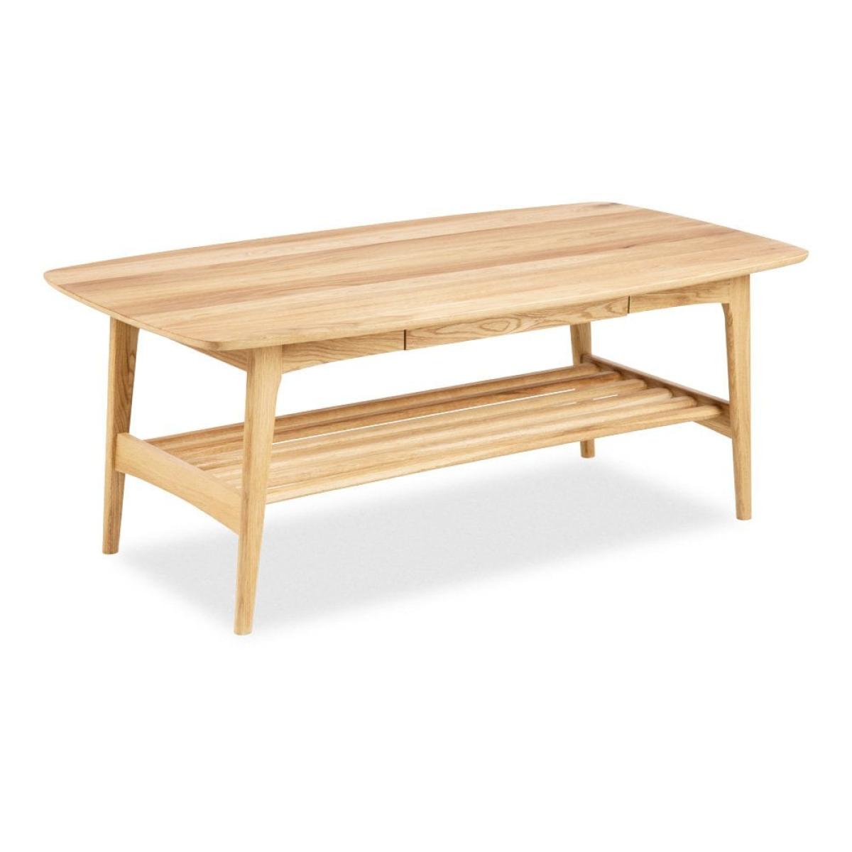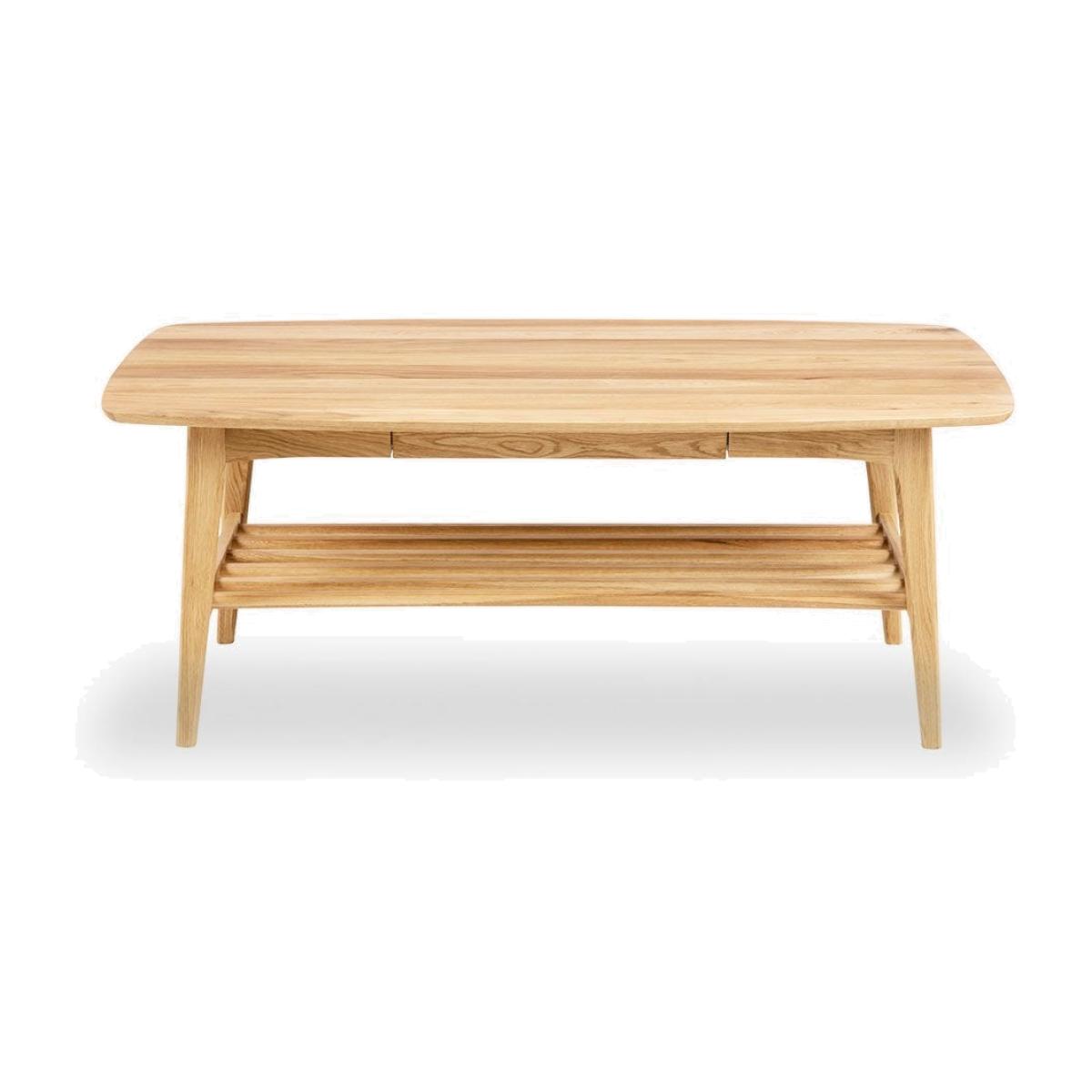 The Emma Wooden Coffee Table boasts a beautiful, natural wood finish for a smooth, calming form that invites warmth into your living room. Accented with angled legs and round edges, this piece has a smooth top surface that makes it easy to clean and maintain. Its hidden drawer is discreetly placed for concealing remotes and magazines, while its lower shelf provides extra storage space for coasters, books, or other items.