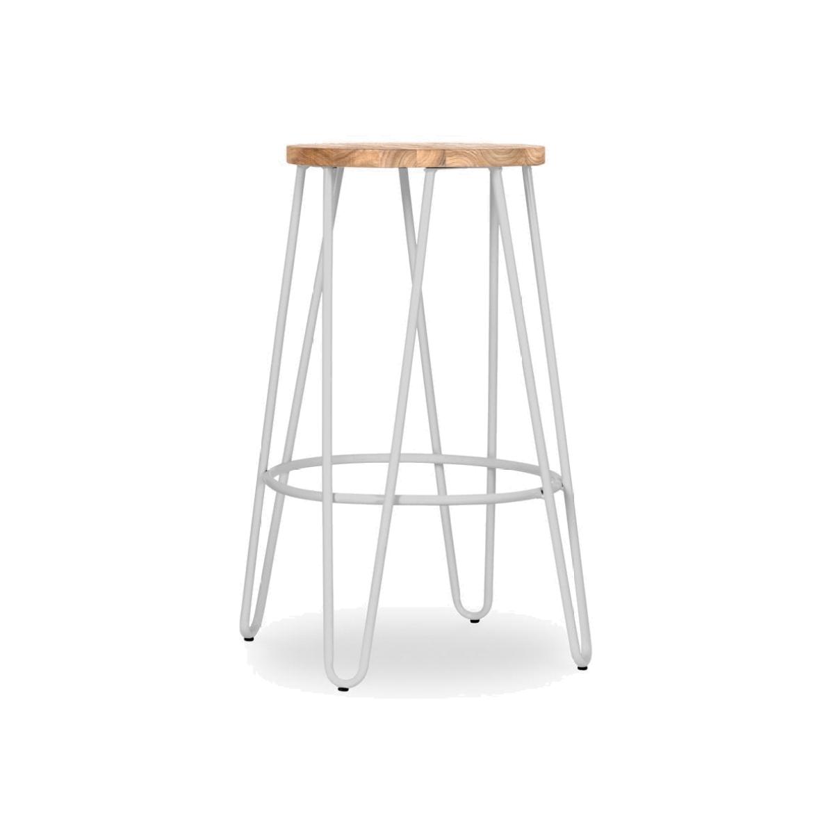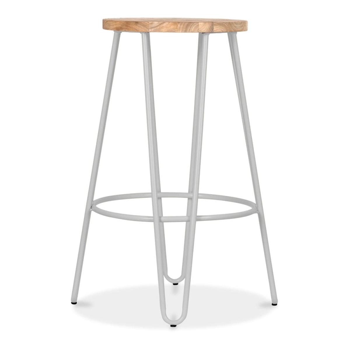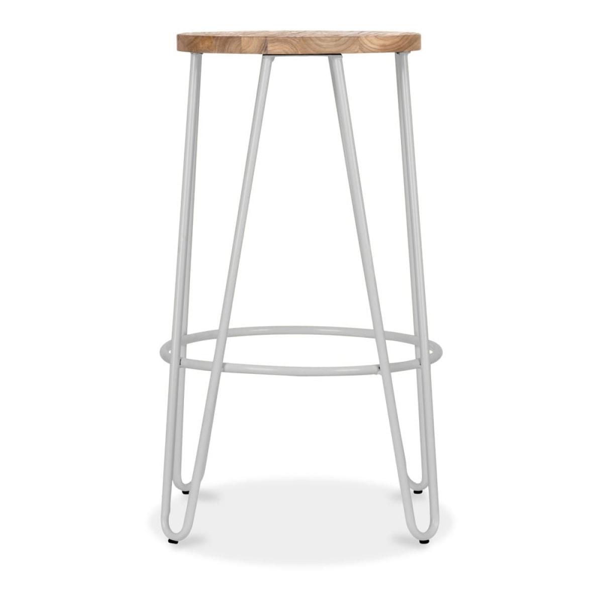 £40 Off Hairpin Metal Kitchen Stool, Elm Wood & Light Grey Natural Wood Seat