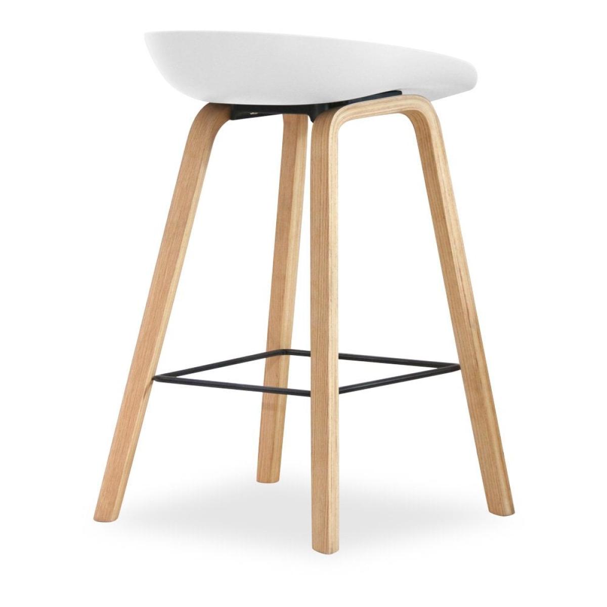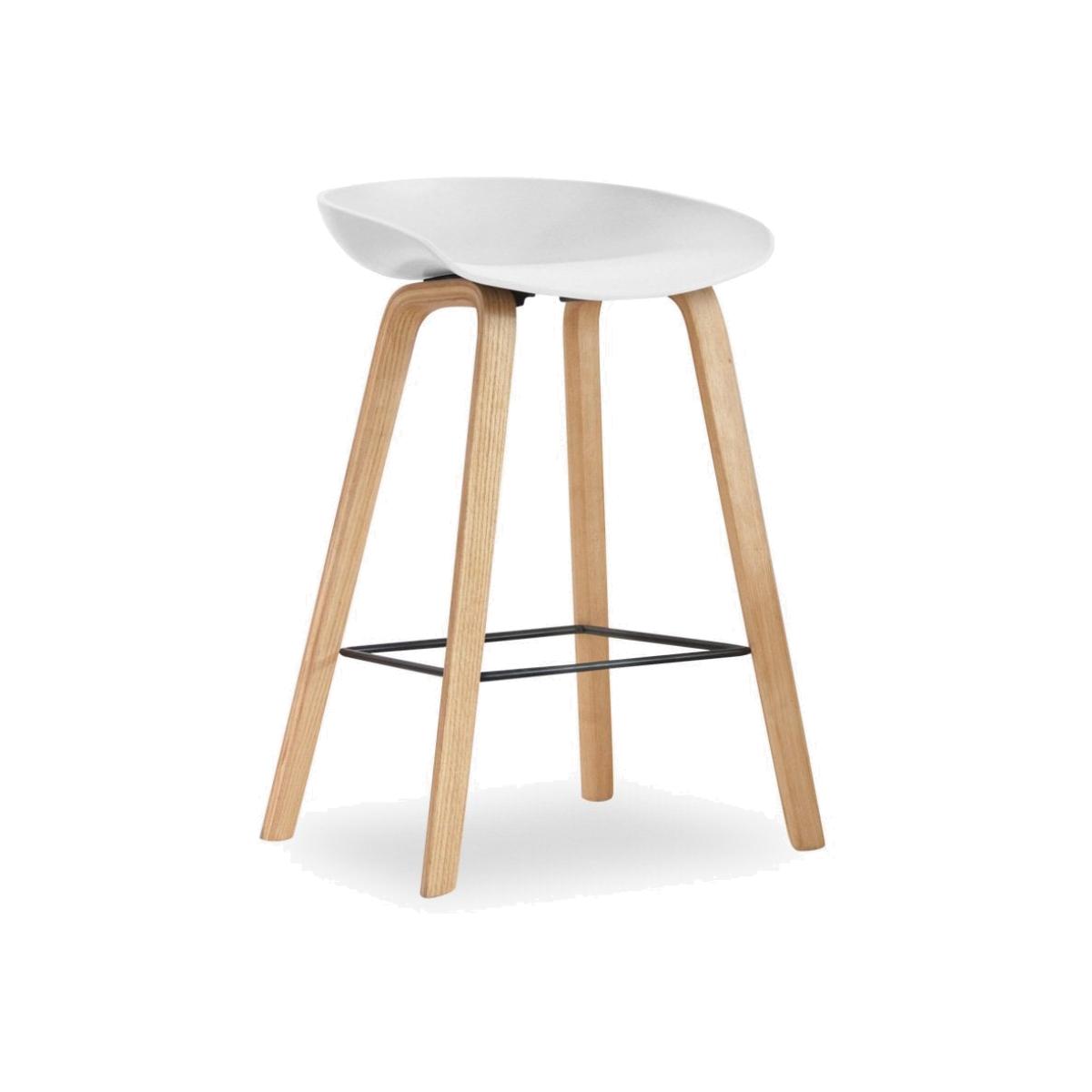Inspired by the sleek and simple notes of Scandinavian design, the Milano Kitchen Stool in white and natural wood is ideal for your kitchen island. The minimalist lines of this stool complement contemporary interiors perfectly with a smooth curved seat and curvaceous wooden legs. Choose from a choice of colours and heights to find the perfect match for your space. View The Milano Range