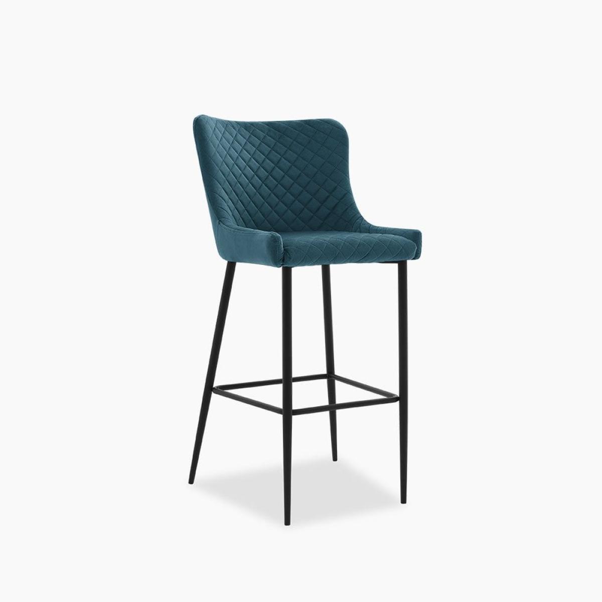I love this barstool for its rich midnight blue velvet and sleek silhouette, which instantly elevates any space with a touch of sophistication. It works well in contemporary kitchens, breakfast bars, or home pubs, especially when paired with brass or matte black accents for a modern luxe look. To style it practically, consider mixing the velvet with textured cushions or throws to add comfort and visual interest. Its height makes it perfect for casual seating at a breakfast bar or kitchen island, and placing it near neutral or patterned paints can really make the colour pop. The dark hue and plush fabric lend a stylish yet practical edge, making it a versatile addition for both everyday use and special occasions.